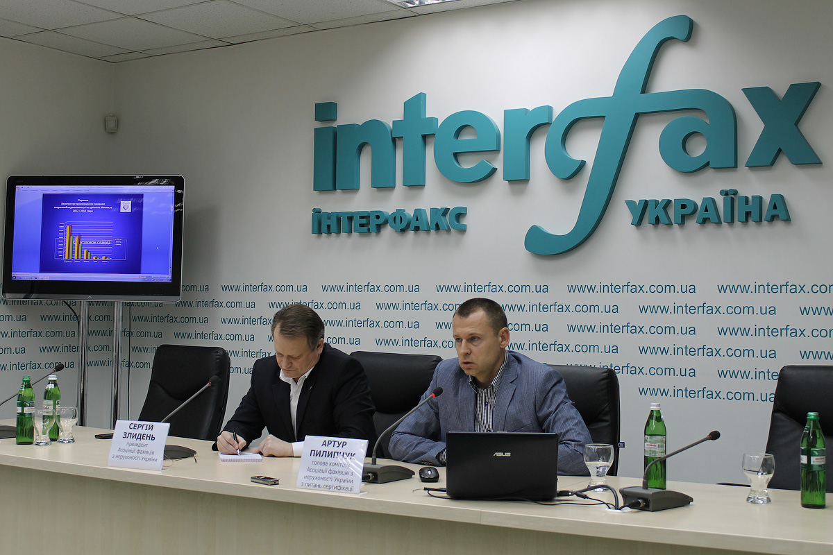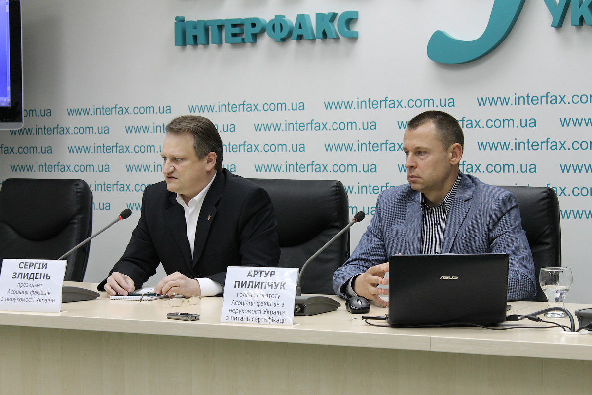 ____________________________________________3_.JPGВо вторник, 21 апреля, в пресс-центре «Интерфакс Украина» прошла открытая пресс-конференция Ассоциации специалистов по недвижимости Украины «Украинский рынок недвижимости в условиях экономического кризиса: результаты первого квартала 2015 г. и прогнозы дальнейшего развития отрасли». Спикерами выступили Президент АСНУ Сергей Злыдень и руководитель комитета АСНУ по вопросам сертификации и обучения Артур Пилипчук.