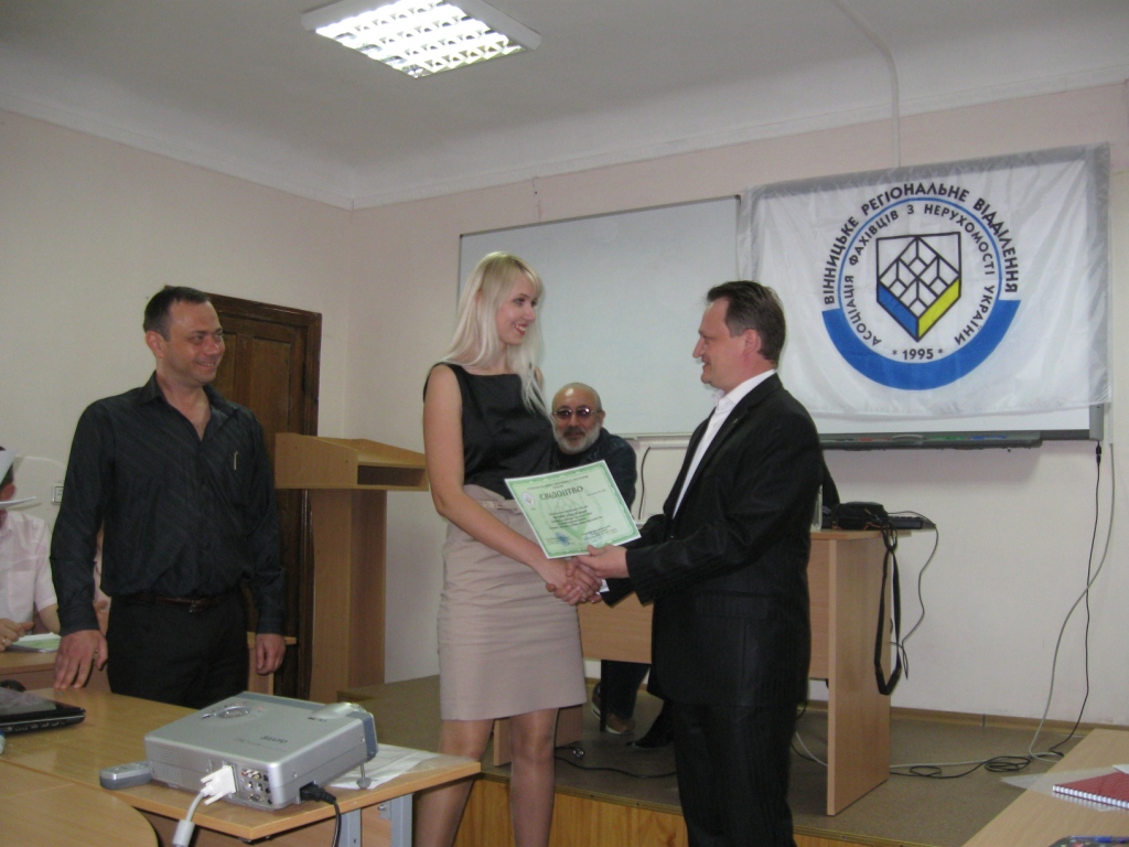 С 28 мая по 2 июня 2012 года в Виннице прошли сертификационные курсы по подготовке специалистов риэлторской деятельности «Операции с жилой и нежилой недвижимостью».