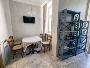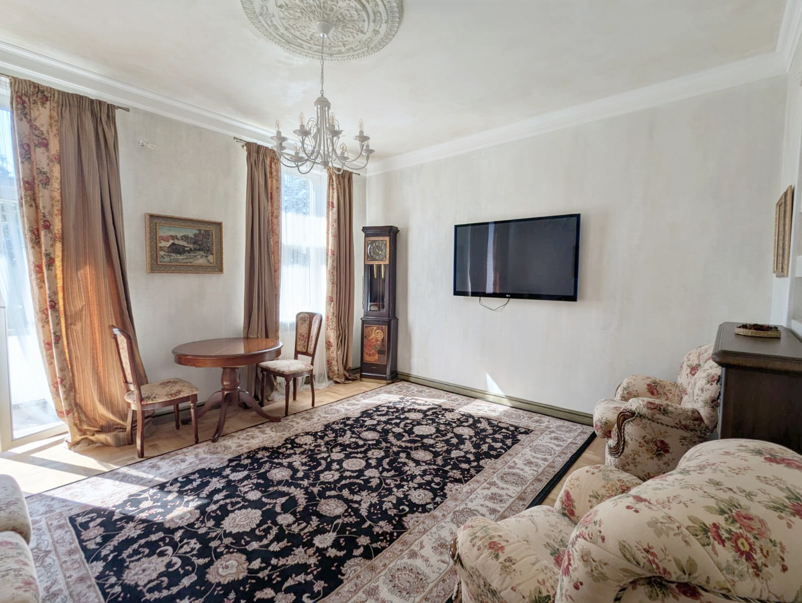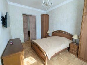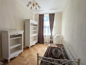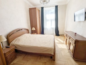 Квартира двостороння, світла. Загальна площа 89,5 м кв, 4 окремі кімнати: три спальні і вітальня. З вітальні є вихід на балкон з чудовим видом на вулицю Липську. В спальнях є ліжка, стильні дерев’яні шафи, тумби, комоди для зберігання речей. У вітальній – диван, два крісла, стіл, електрокамін. Всі меблі в класичному стилі.
