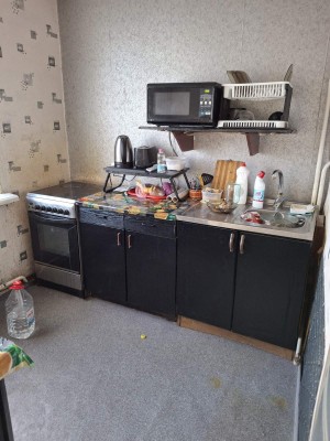 Квартира світла,не кутова,вікна квартири виходять на схід дуже тепла,повністю обставлена,є необхідні меблі- шафа,2 спальний розкладний диван в гарному стані,не продавлений,чистий,вбудовані кухонні меблі,стіл,стільці) та техніка (холодільник,пральна машина)
