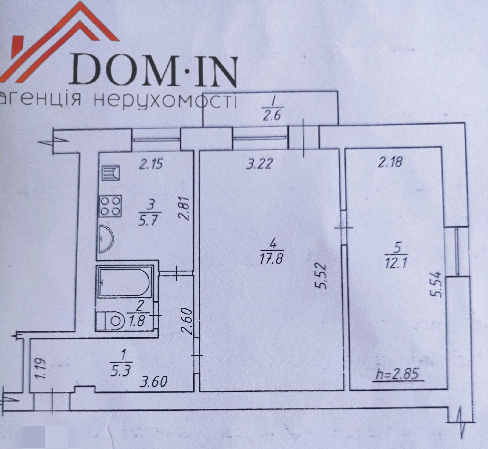 3 кімн., площа 50/34/6, поверх 1/5