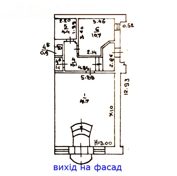 - Площа: 68 м², що включає просторий торговий зал (41,7 м²), окремий кабінет (10,7 м²), підсобне приміщення (4,4 м²) та санвузол.