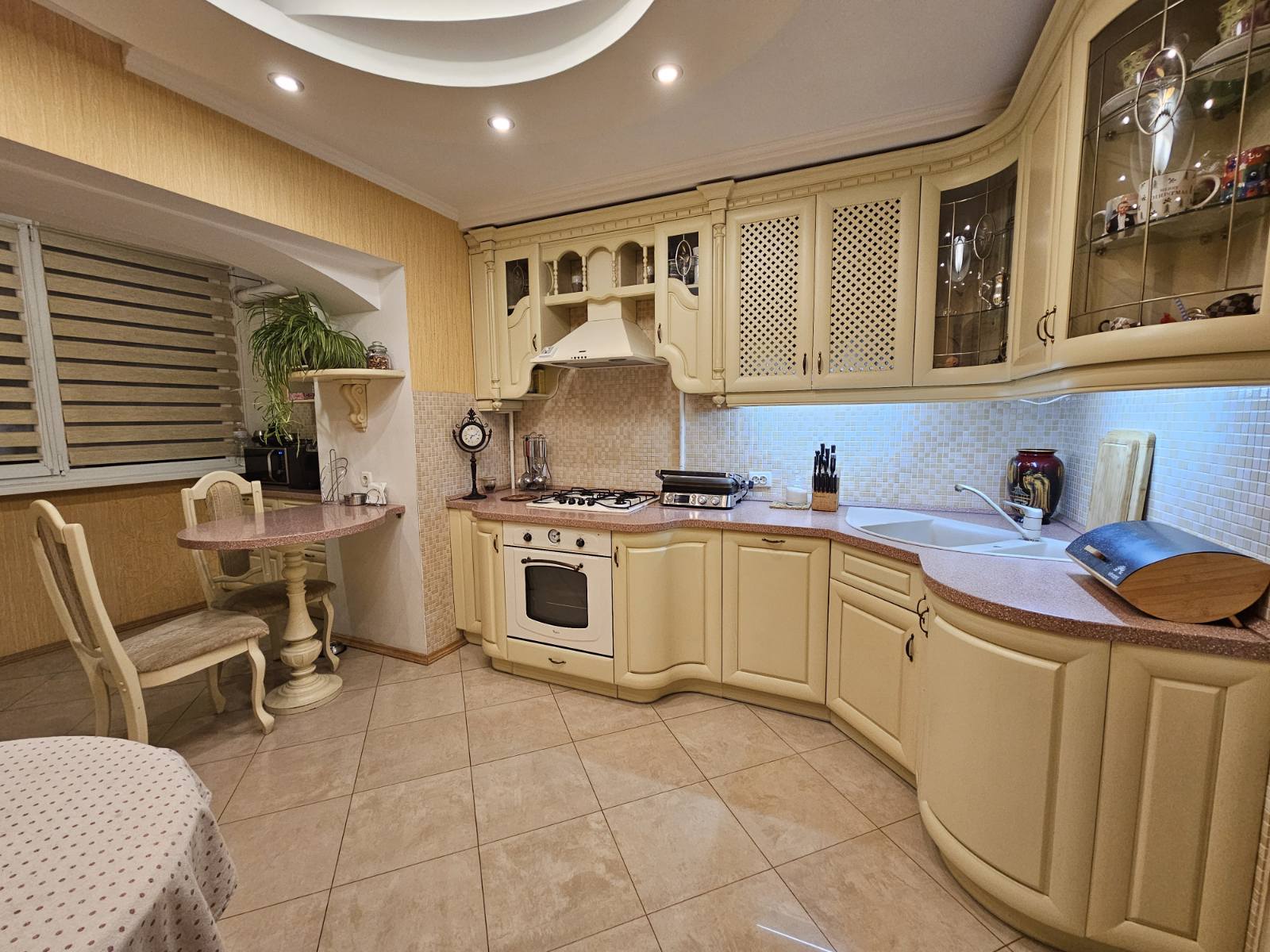 Класичний стиль дотримано у всіх кімнатах та кухні. Добротні меблі Інтерстиль, якісна техніка, та зі смаком підбране оздоблення яке додає певного шарму інтер"єру. Все це входить у вартість квартири.