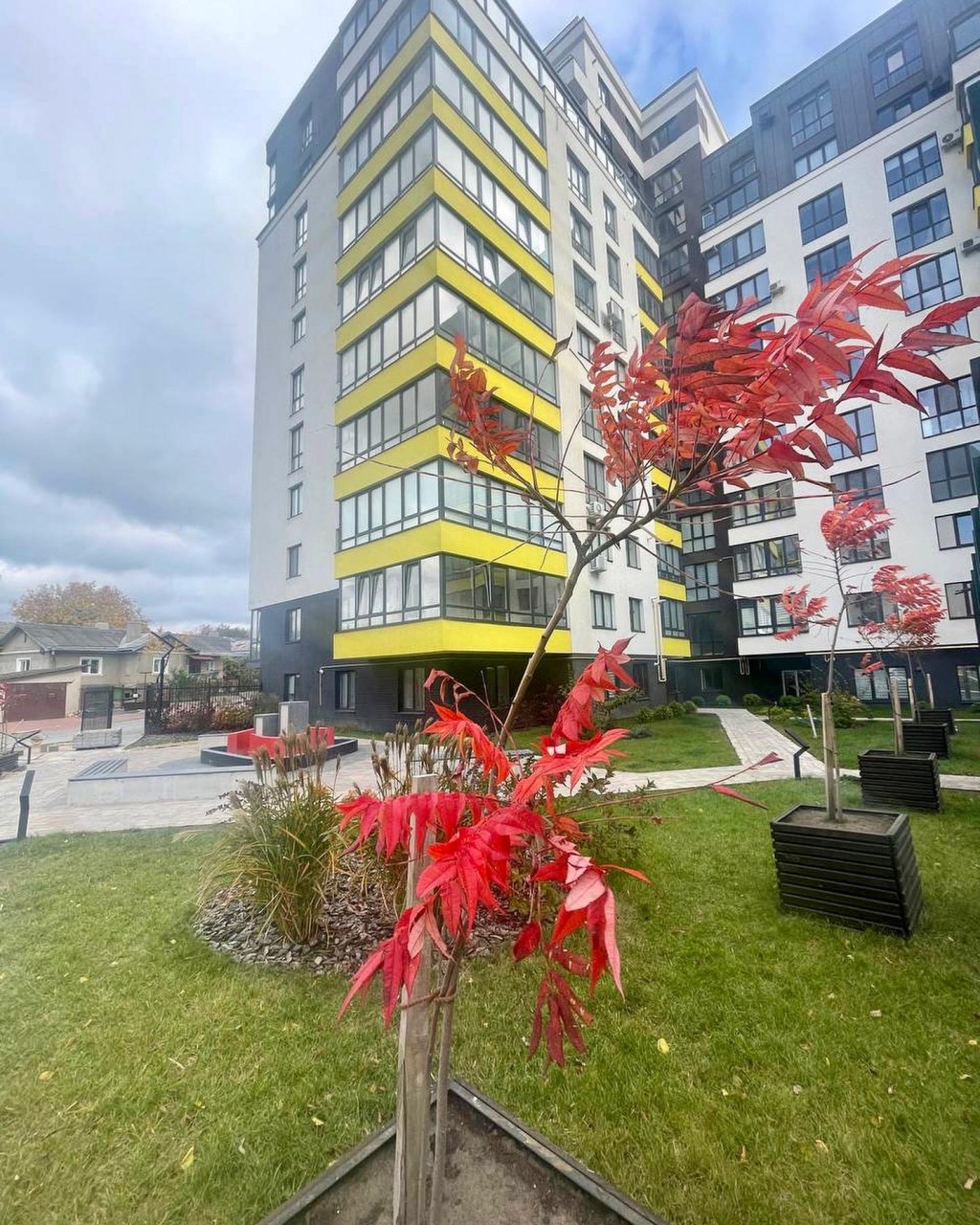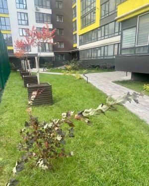 Повністю відокремлений внутрішній двір без доступу для автомобілів. На площі двору розташовується мультиспортивний стадіон з сучасним обладнанням, відпочинкова зона з фонтаном, альтанками ландшафтним дизайном , атракціони.