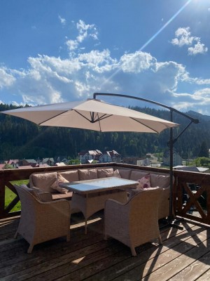 Є велика, простора тераса - також з дорогими меблями.
