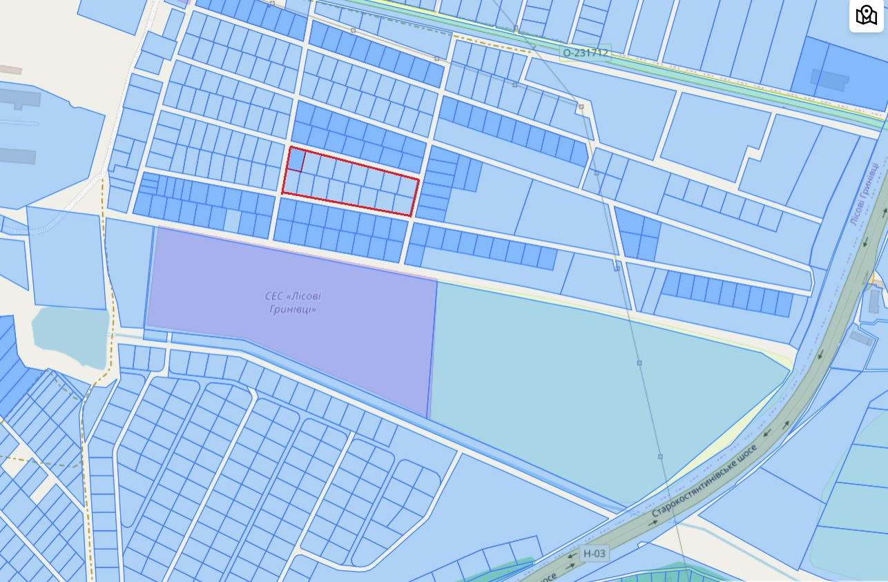 Продам землю. 10 соток. Лісові Гринівці. Виїзд на Старокостянтинівське шосе. Вартість: 800$/сотка + витрати на переоформлення. Кадастровий номер: 6825083600:03:007:0956 На загальній схемі схемі №0956 Тип власності: Приватна власність Цільове призначення: 01.03 Для ведення ОСГ. Можна перевести під індивідуальне будівництво. Поруч є ще такі ж ділянки на продаж