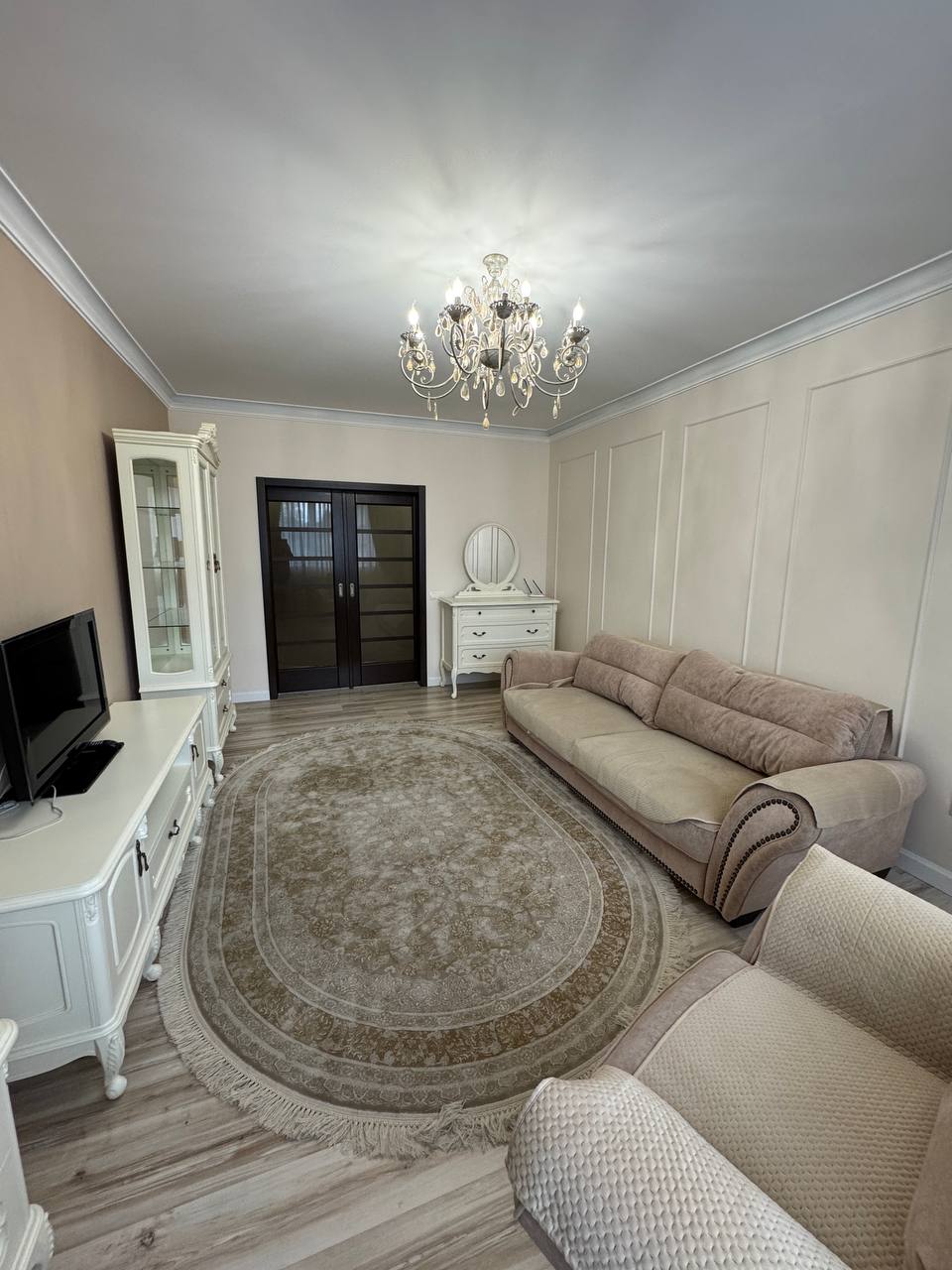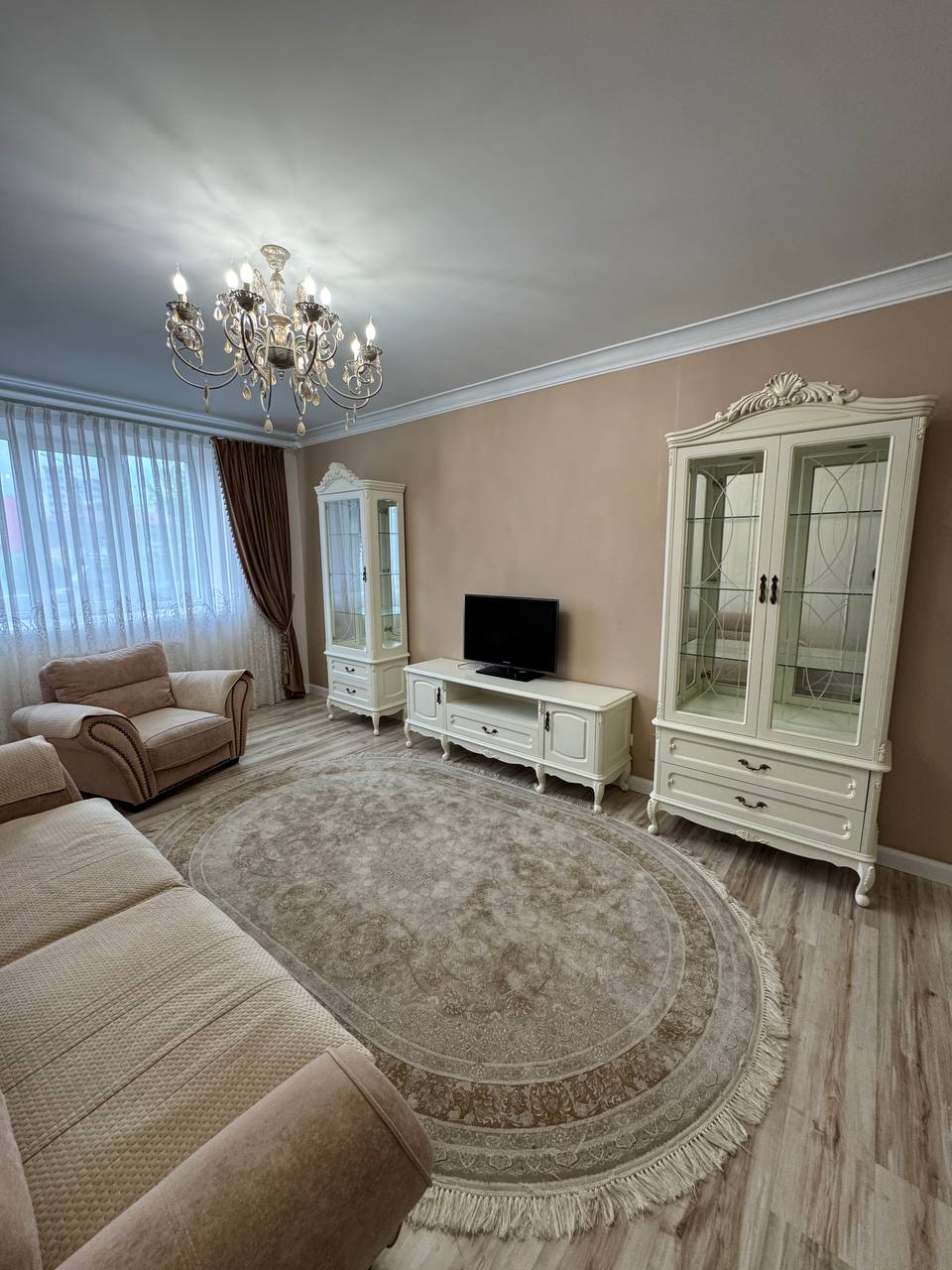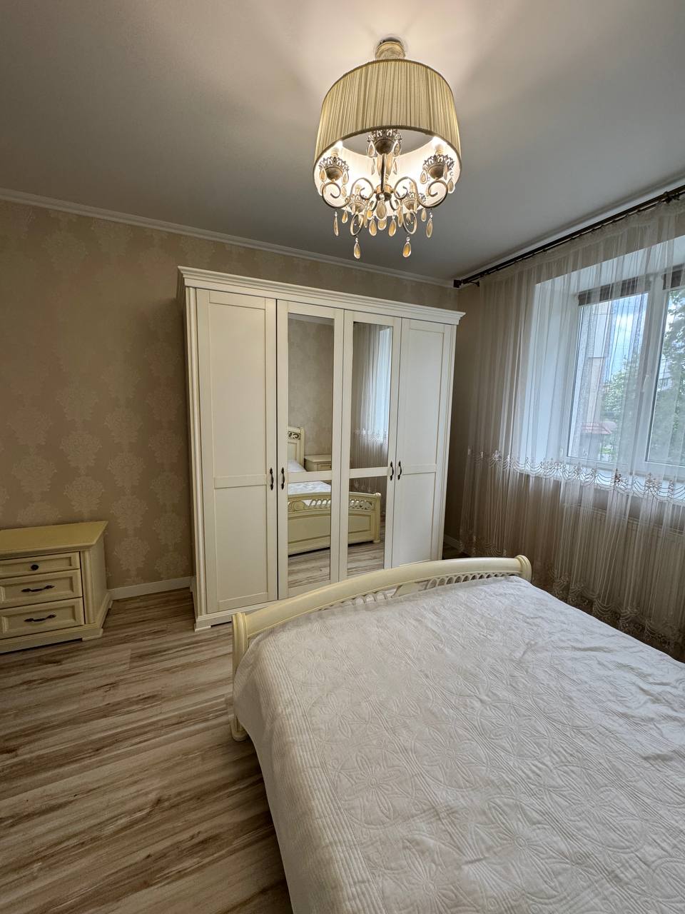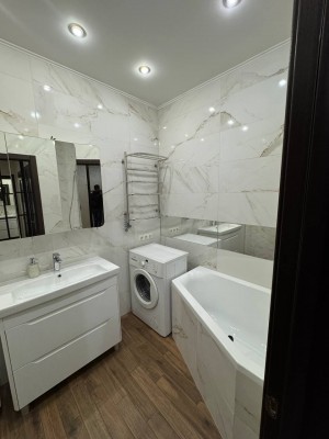 Ремонт у спокійних світлих тонах, дорогі матеріали, стильні меблі — все виглядає охайно, зі смаком і без зайвих деталей.