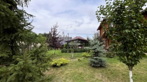 На ділянці: озеленення, ставок, гриль-зона, дитячий куточок, вольєр, сад з плодовими та декоративними деревами.