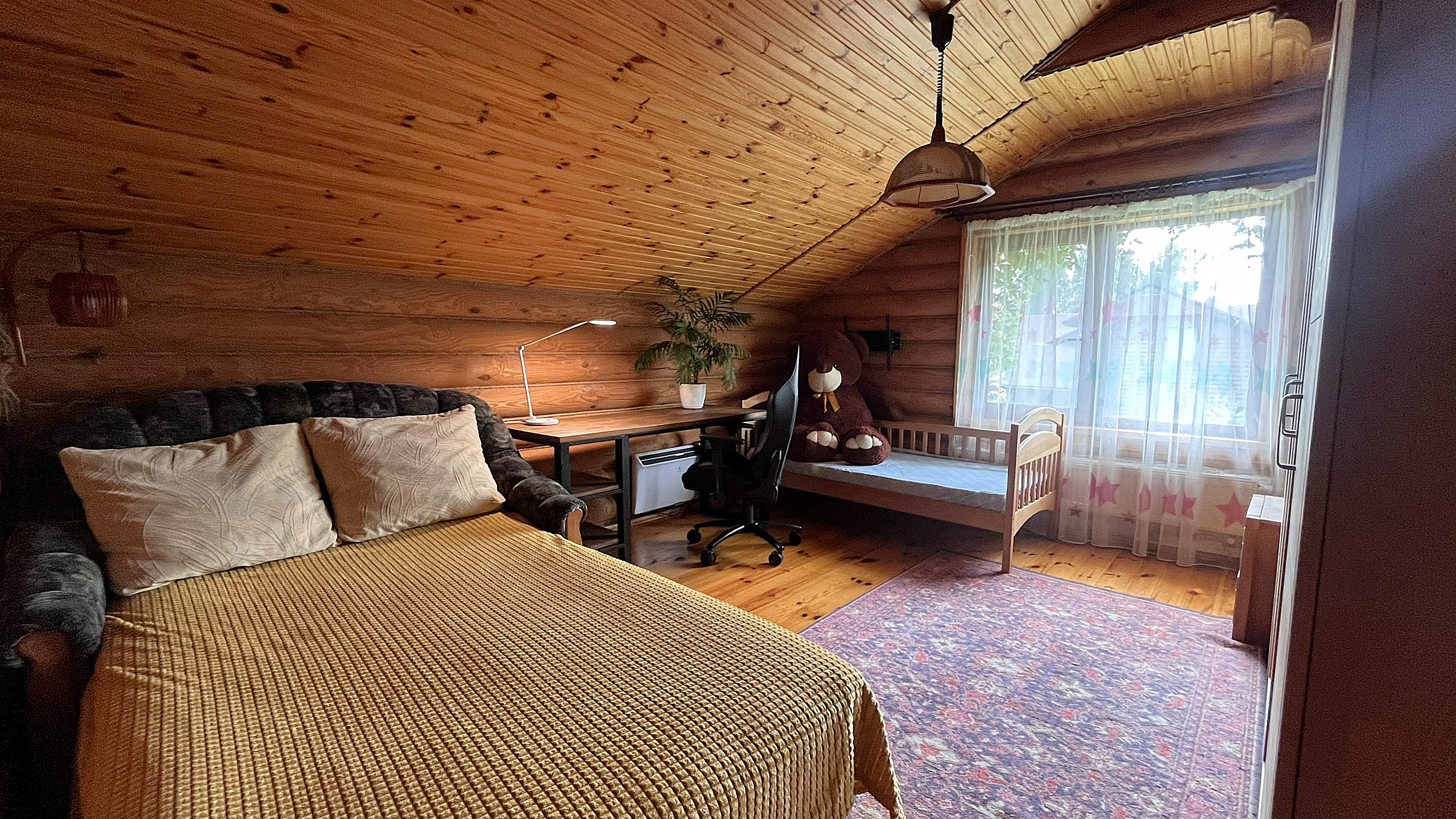 Екологічний двоповерховий будинок з натурального соснового брусу. Оснащений сонячною електростанцією, сучасними системами опалення, водоочистки, безпеки та «розумного дому». Автономне водопостачання, септик, зарядка для електромобіля, генератор, відеонагляд.