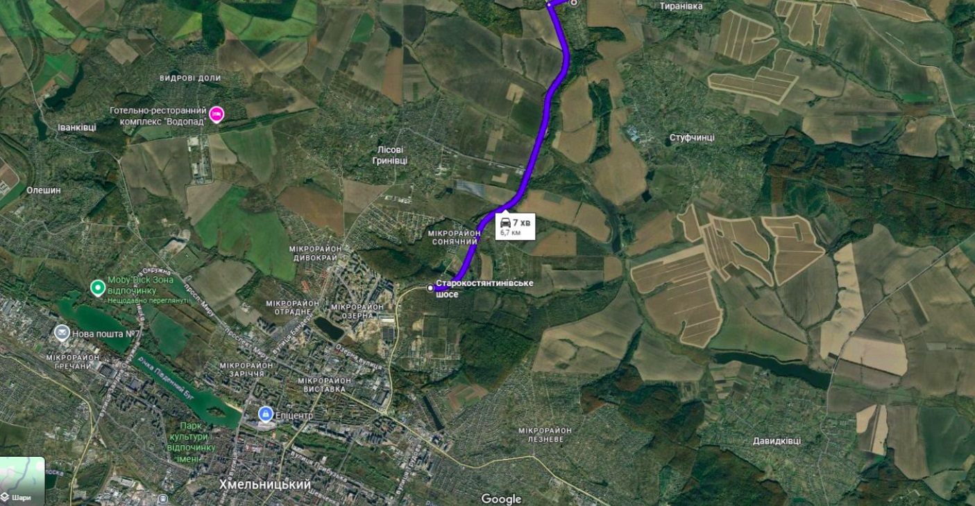 Передмістя, не далеко від Хмельницького. Дорога рівненька – асфальтована. Від міста до будинка по асфальтованій дорозі 6.7 км, до 7 хв на авто.