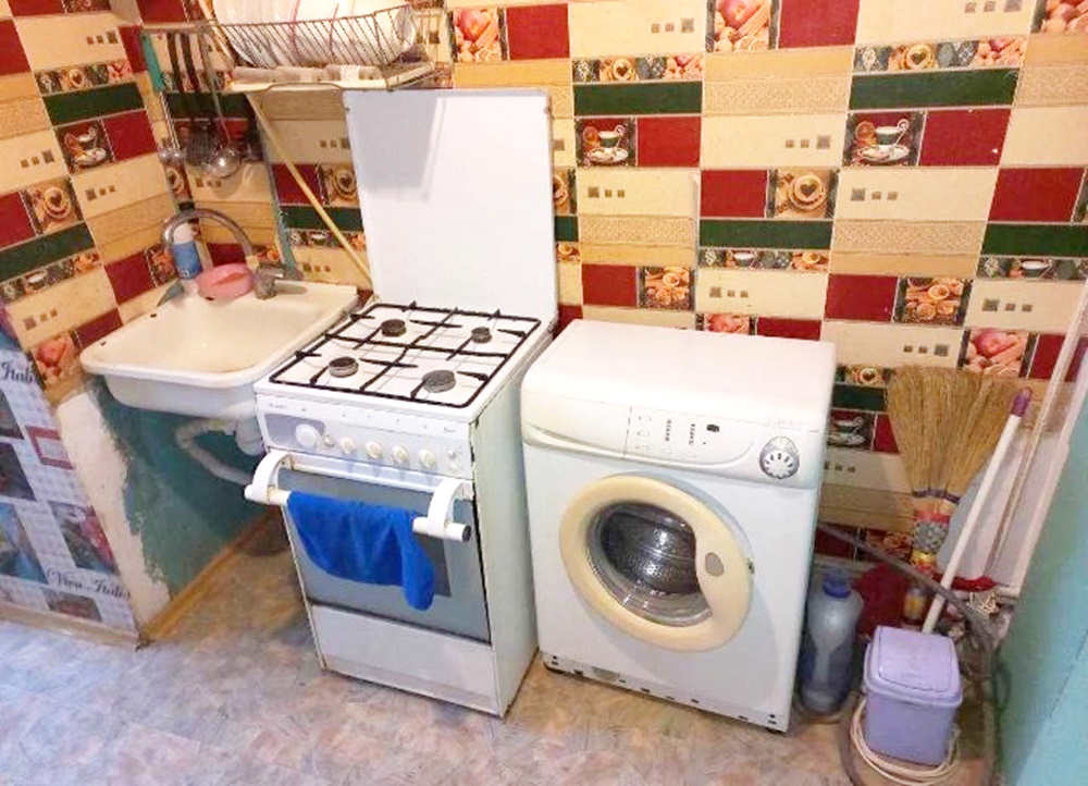 Є меблі на кухні, шафа, 2 розкладні дивани, мебльована стінка, пральна машина, холодильник, є інтернет дикий сад
