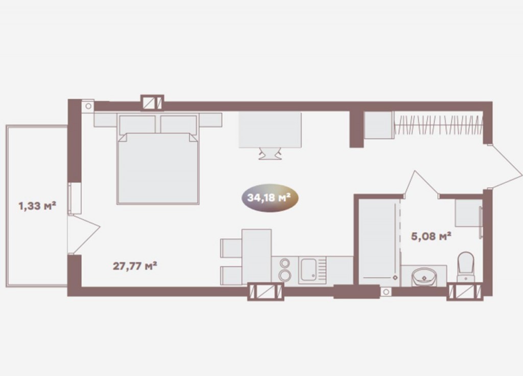 Загальна площа: 34 кв.м