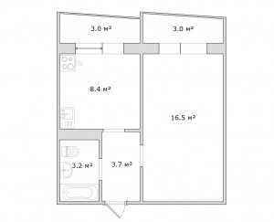 1 кімн., площа 37/20/8, поверх 8/10