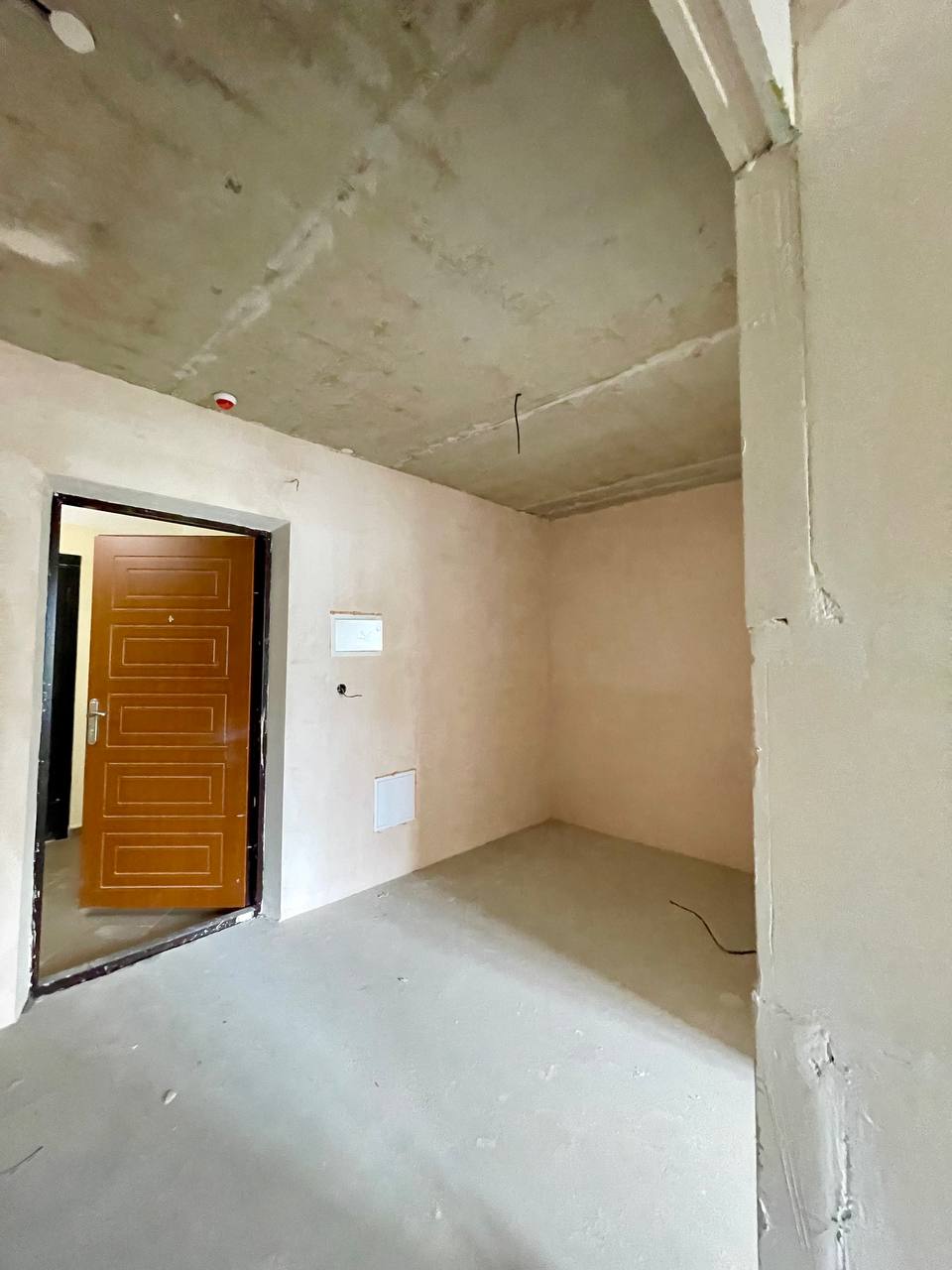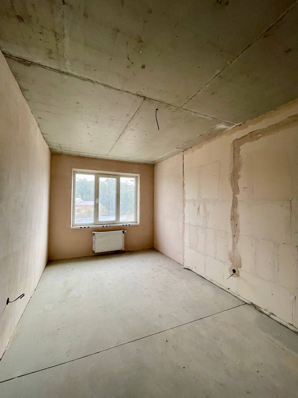 Штукатурка на стінах, стяжка на полу. Балкон засклений. Електрика вже розведена. Електричний лічильник та лічильник тепла.