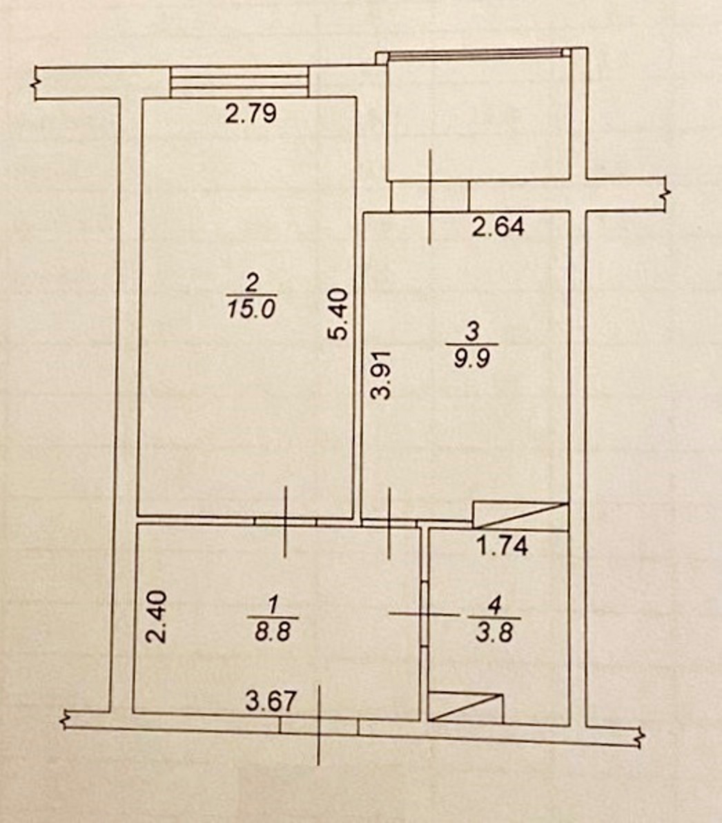 Площа 42/15/10 кв.м., 3 поверх.