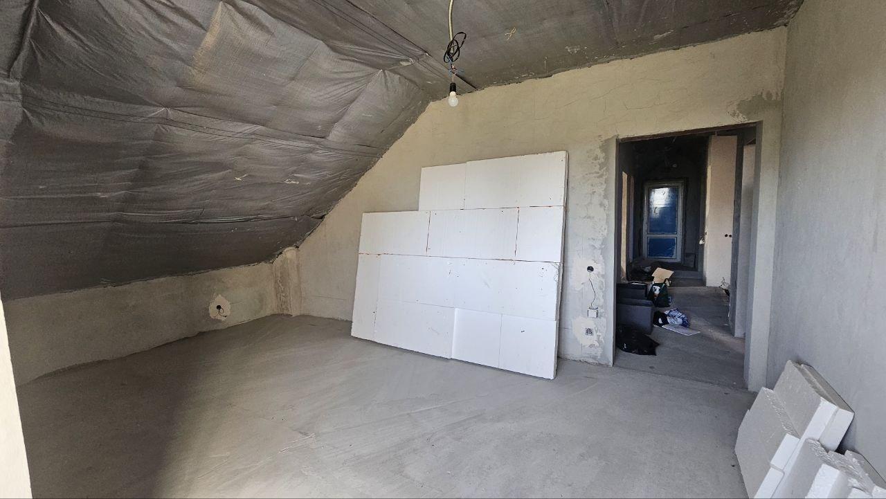 Другий поверх три окремі спальні — 28,3 м², 23,0 м², 16,9 м² гардеробна (7,8 м²) та санвузол чекають на свій сучасний інтер’єр. Поштукатурені стіни, розведене опалення і залита чорнова підлога. Підвал: 40 м², коридор 16,3 м², гараж 31,3 м², гардероб (1,4 м²). Просторий, сухий, із якісних блоків та міцним перекриттям — може стати ідеальним місцем для домашнього кінотеатру, винного льоху чи тренажерного залу.