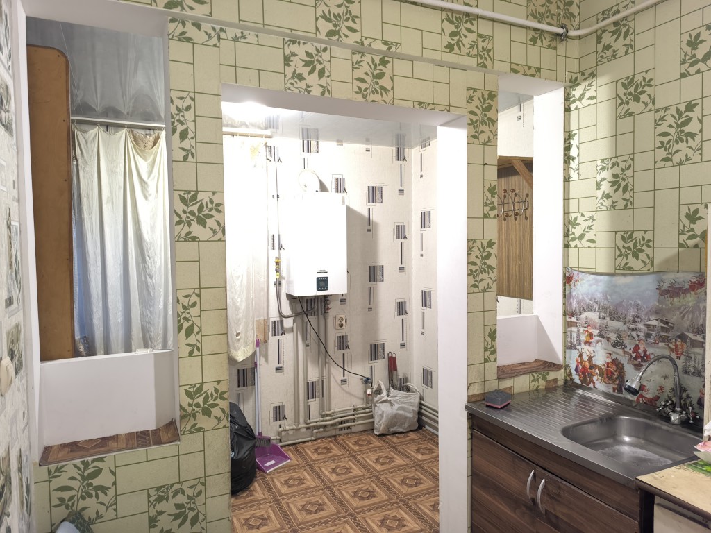 Квартира розташована на 1 поверсі цегляного, утепленого будинку, автономне опалення, двухконтурний котел, кухня площею 7 кв.м.