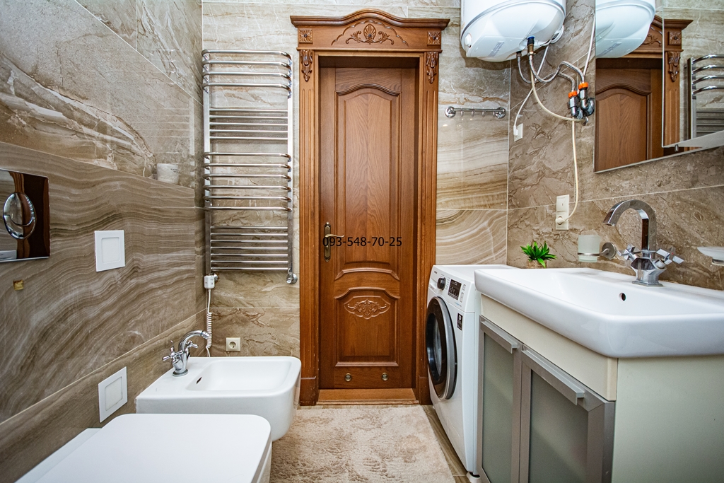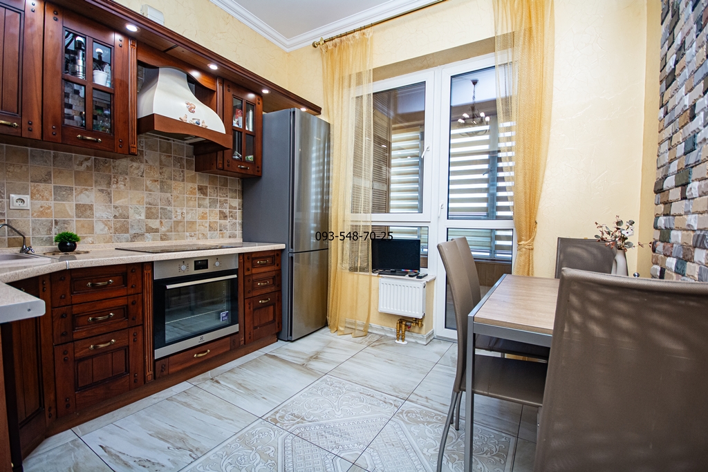 Ремонт зроблений з якісних еко-матеріалів: паркетна дошка, керамограніт, мармур, меблі з натурального дерева. В кожній кімнаті кондиціонер. Всі вікна квартири з панорамним видом на Дніпро та історичний Київ.