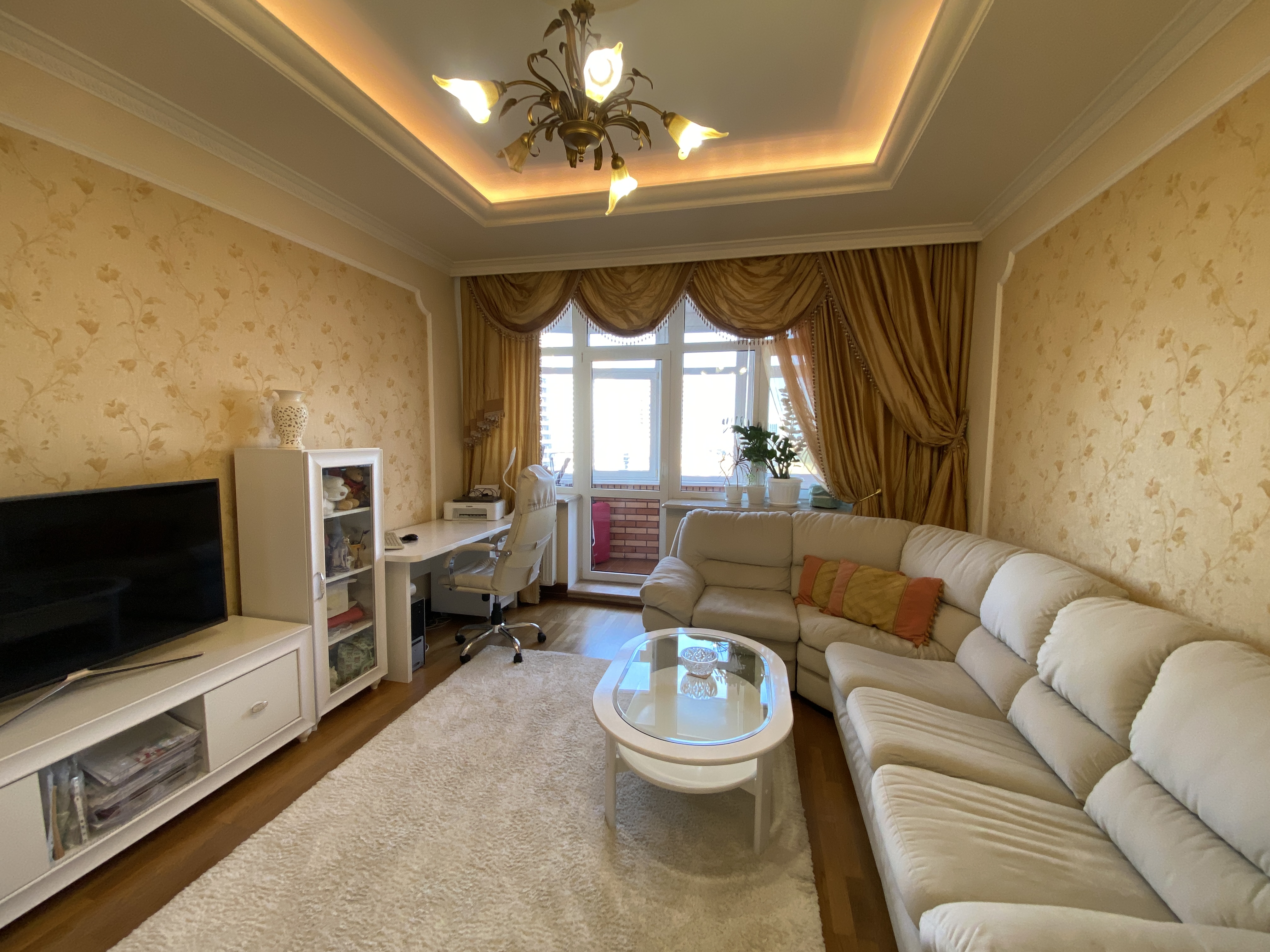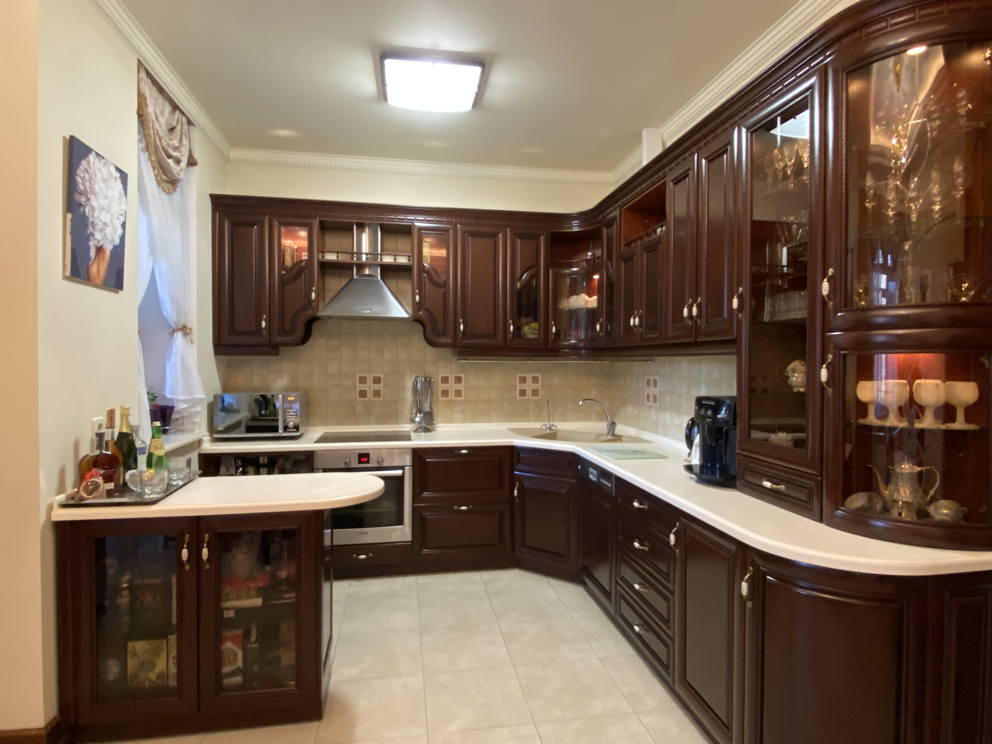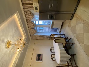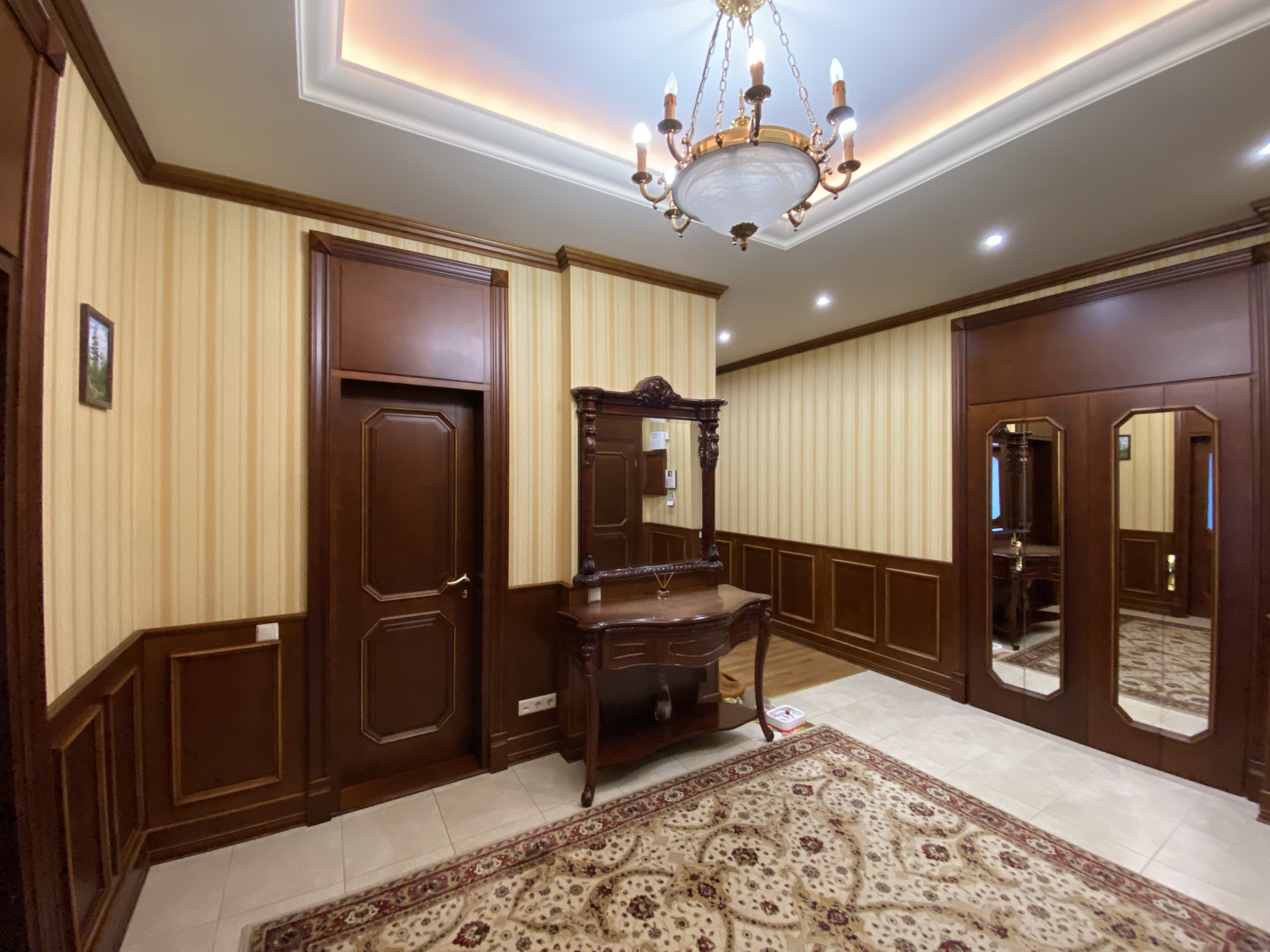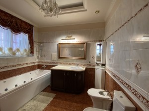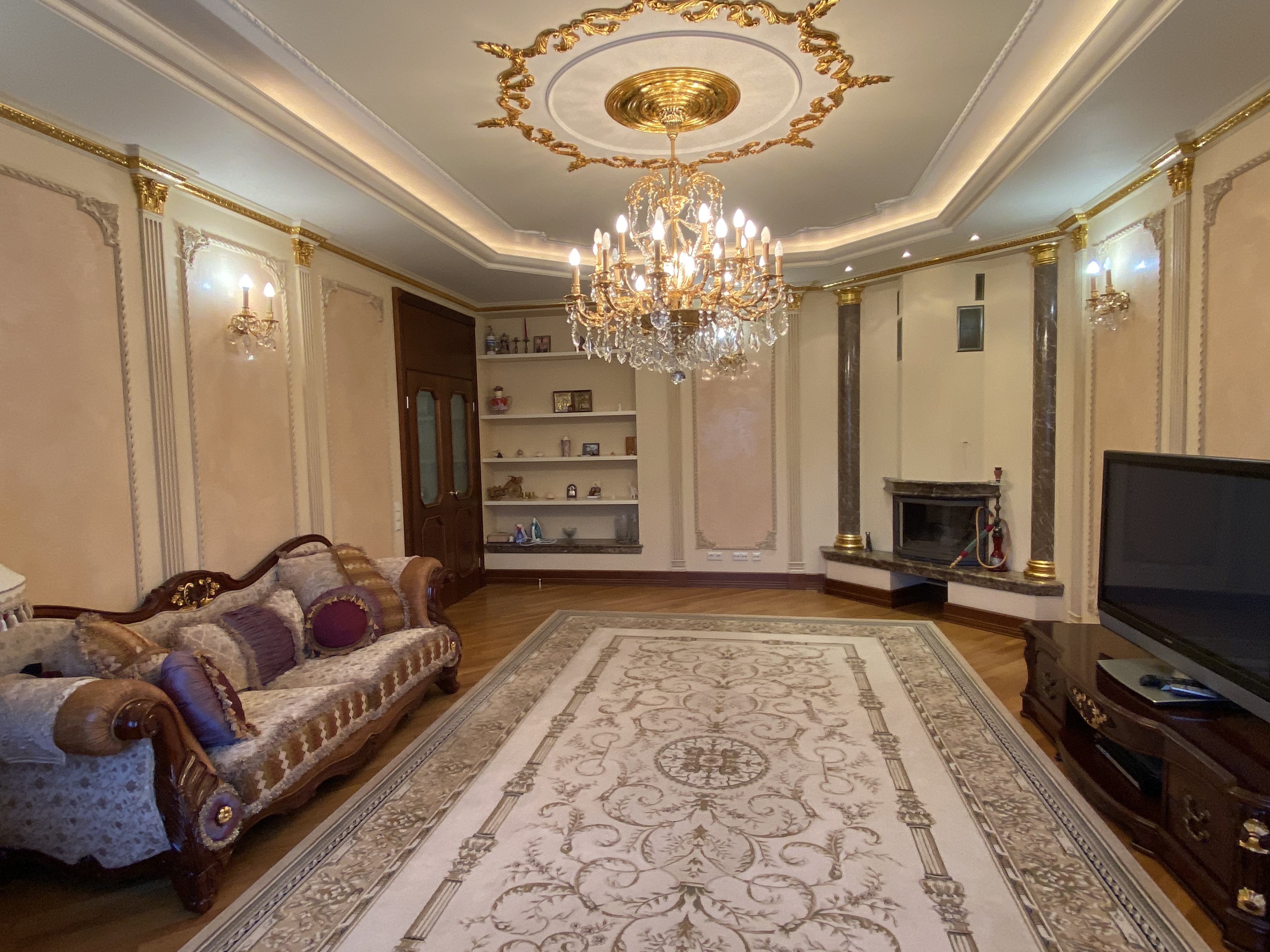В квартирі зроблений якісний капітальний ремонт в класичному стилі. Використані натуральні матеріали, під замовлення: на підлозі італійська плитка, натуральний паркет, підвіконня і стільниця на кухні, камін - все це із натурального каменю, на стінах венеціанська штукатурка з авторською лепніною. Якісні двері, фурнітура, змішувачі GROHE - все у відмінному стані.