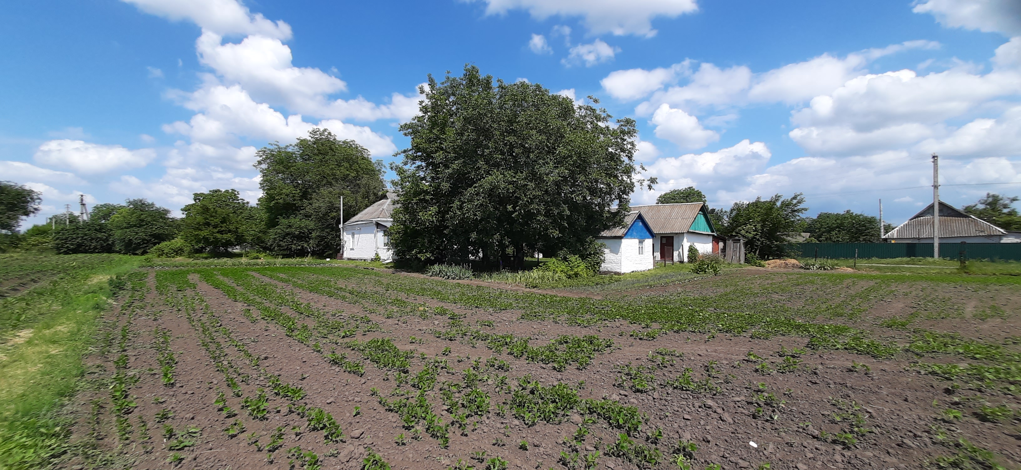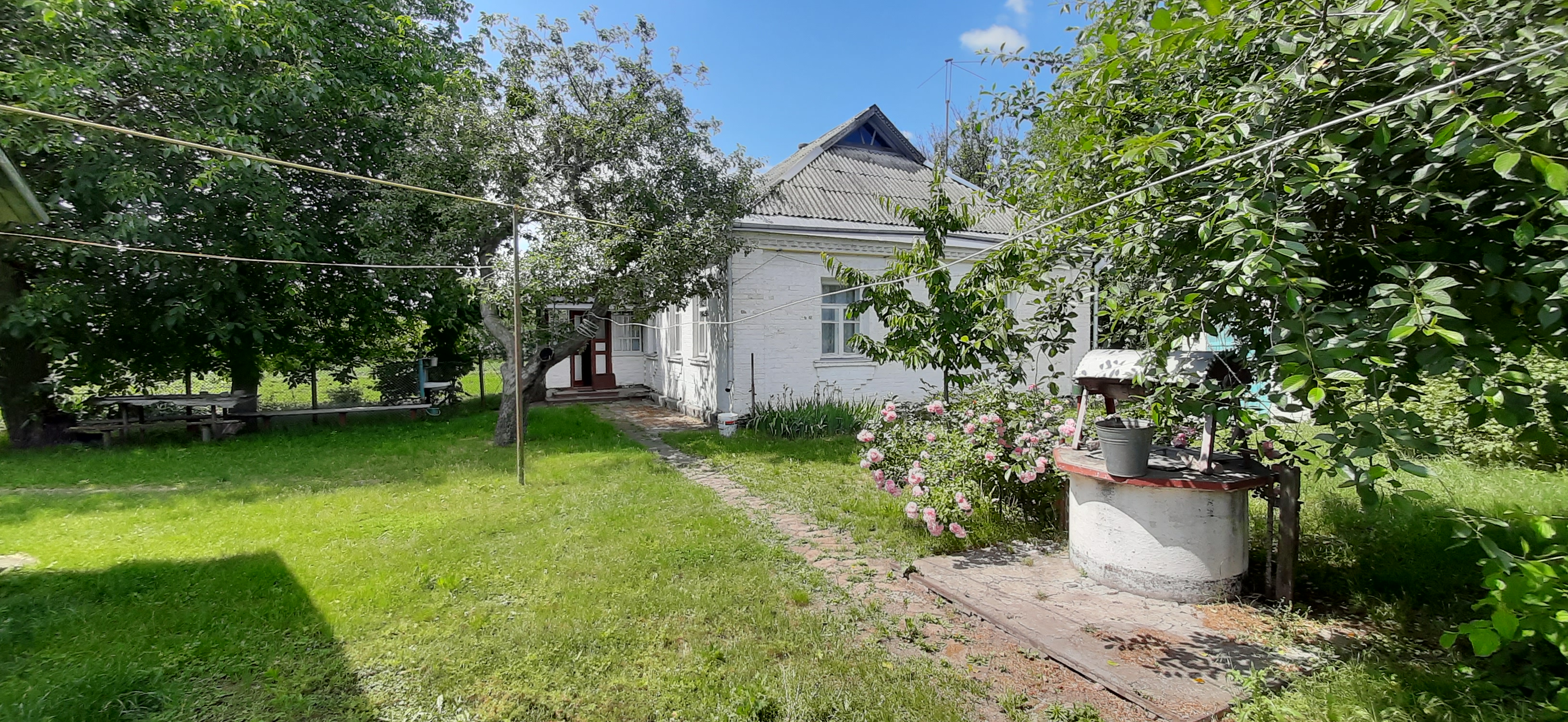 у дворі госп будівлі, колодязь, фруктовий сад