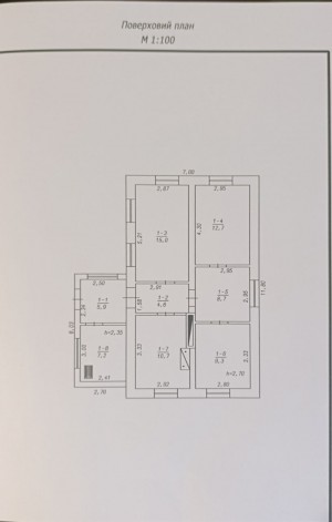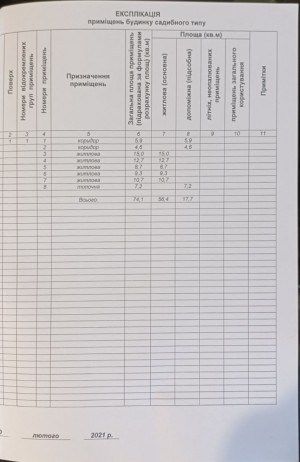 Основний будинок одноповерховий з прибудованою верандою, яка не входить в площу, площа 74.1/56.4/10.7 м.кв. + прибудова (веранда закритого типу +- 15 м2). Утеплений пінопласт 10 мм.