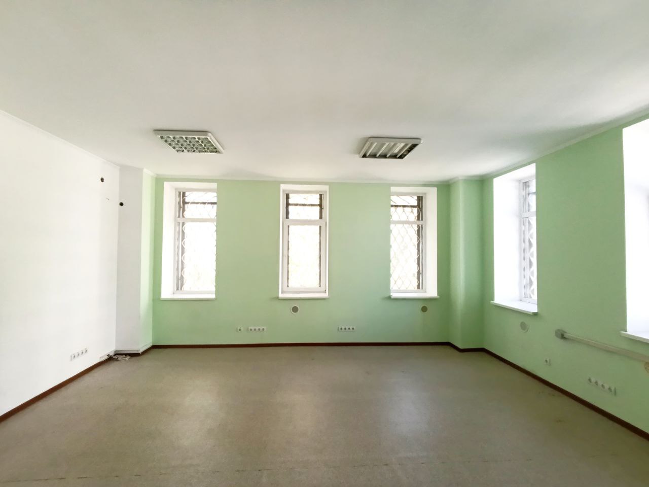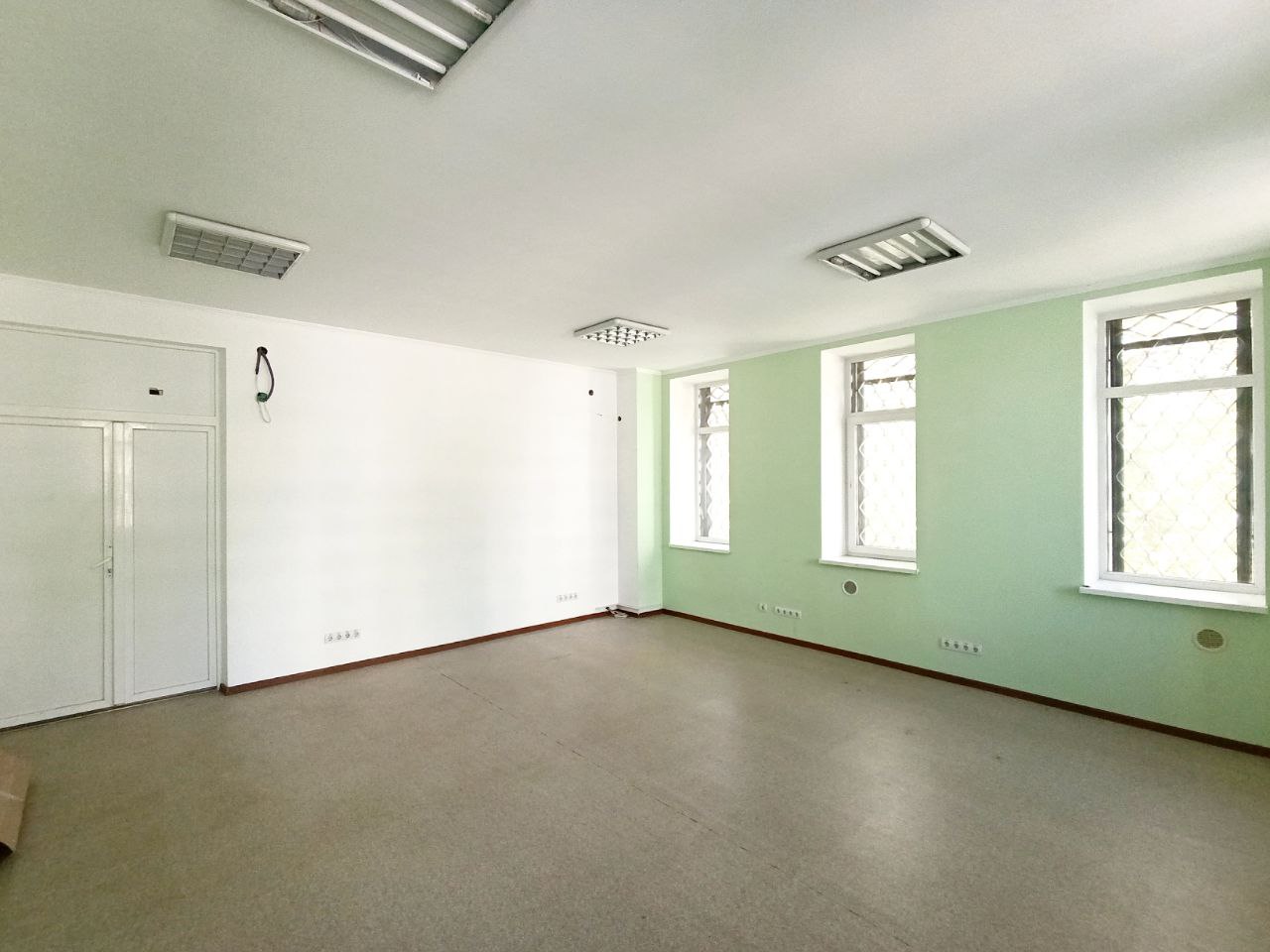 Приміщення Площею 36 м.кв., правильної прямокутної (квадратної) форми, з безліч вікон – дуже просторе і світле. Цілодобовий доступ. Санвузол на поверсі. Без опалення (колись був кондиціонер). Без меблів.