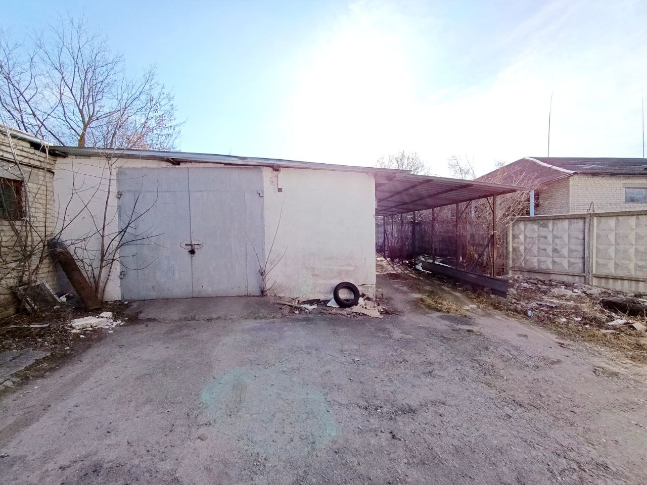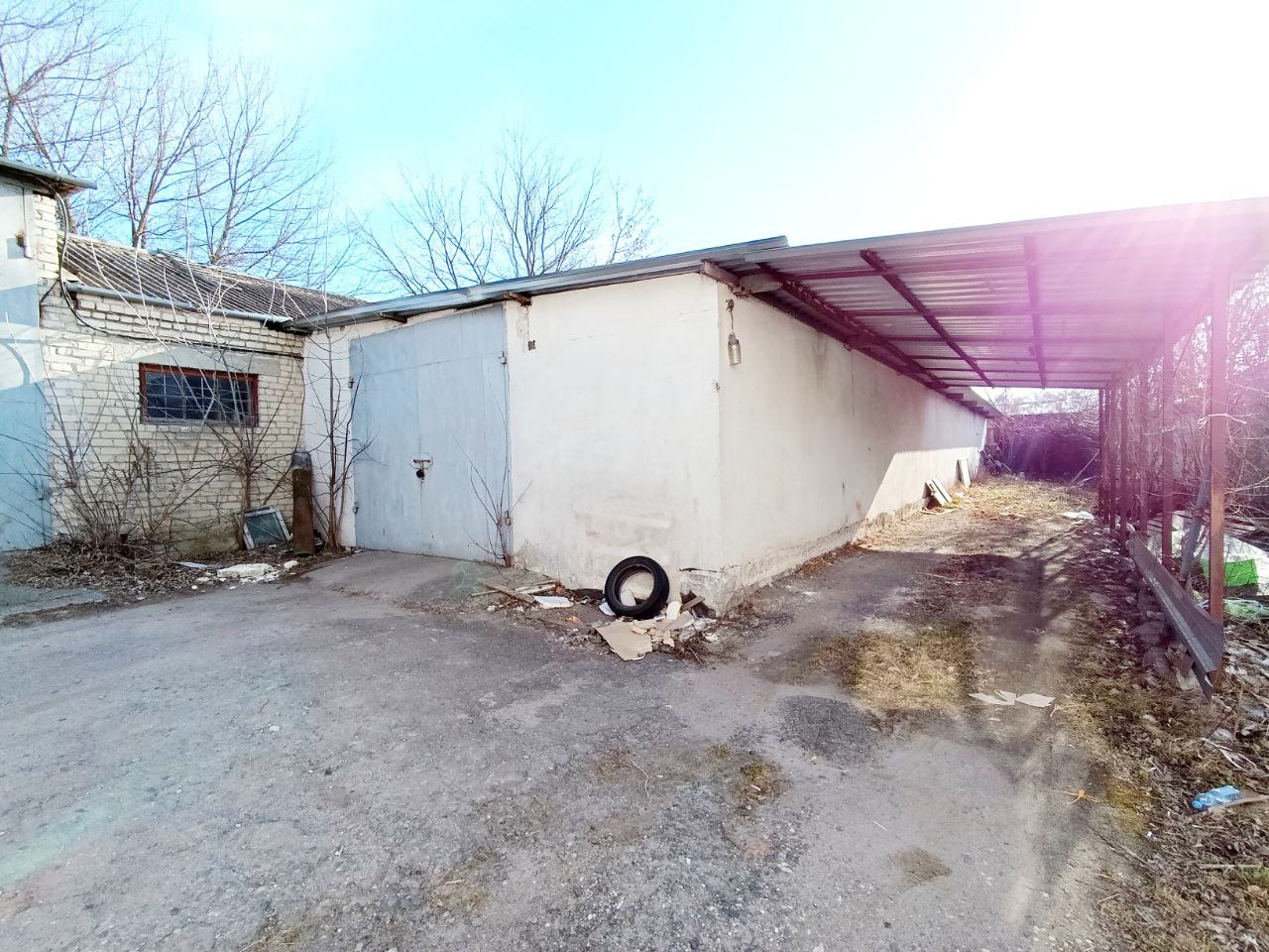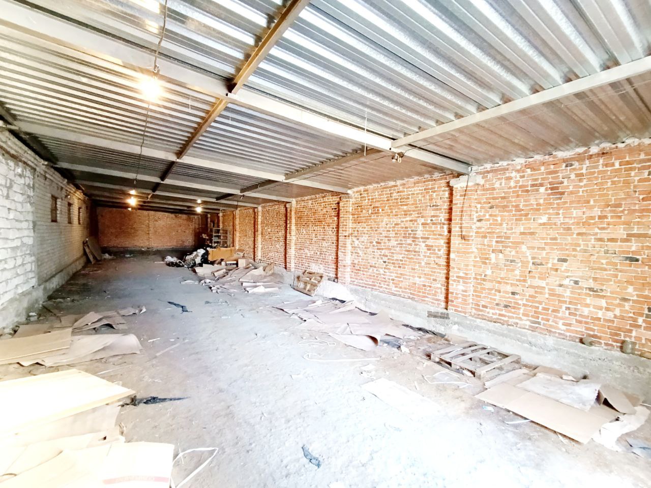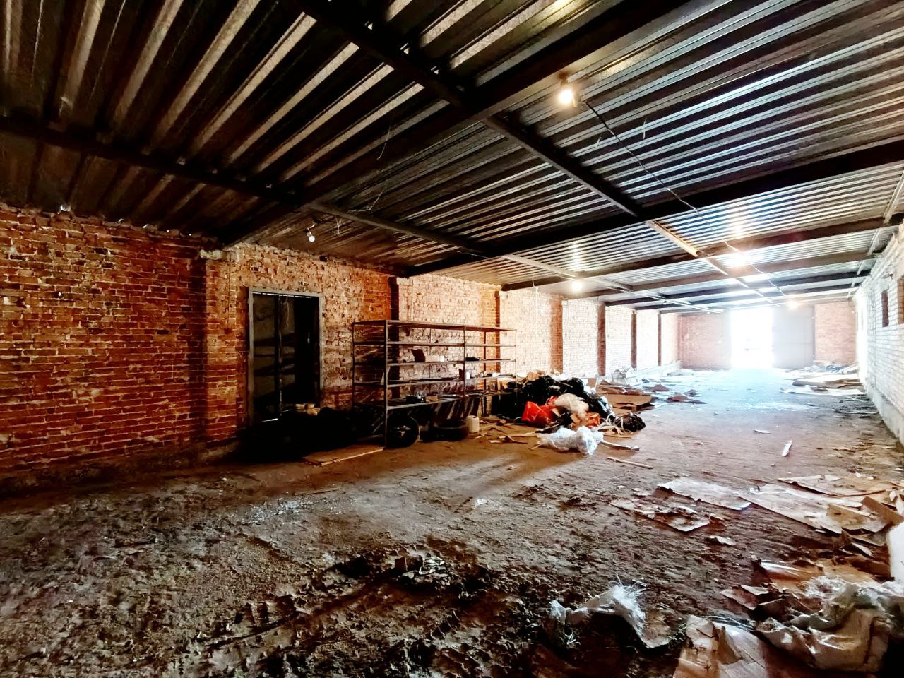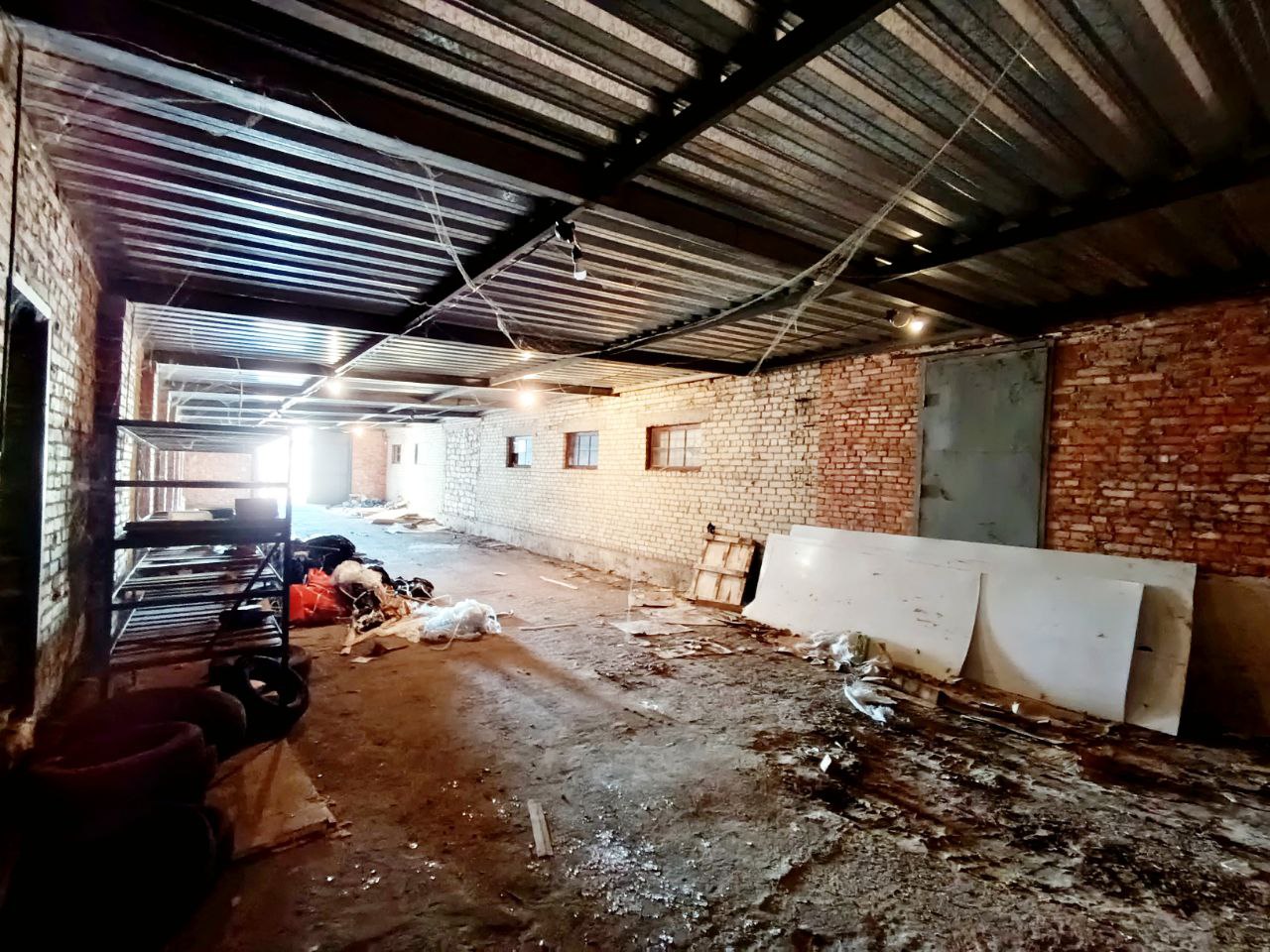 Капітальний склад 198.6 м.кв., поряд є територія +- 3-4 соток, є навіс (на фото видно), висота стелі h=3.35 метрів, великі металеві ворота, два входи у склад.