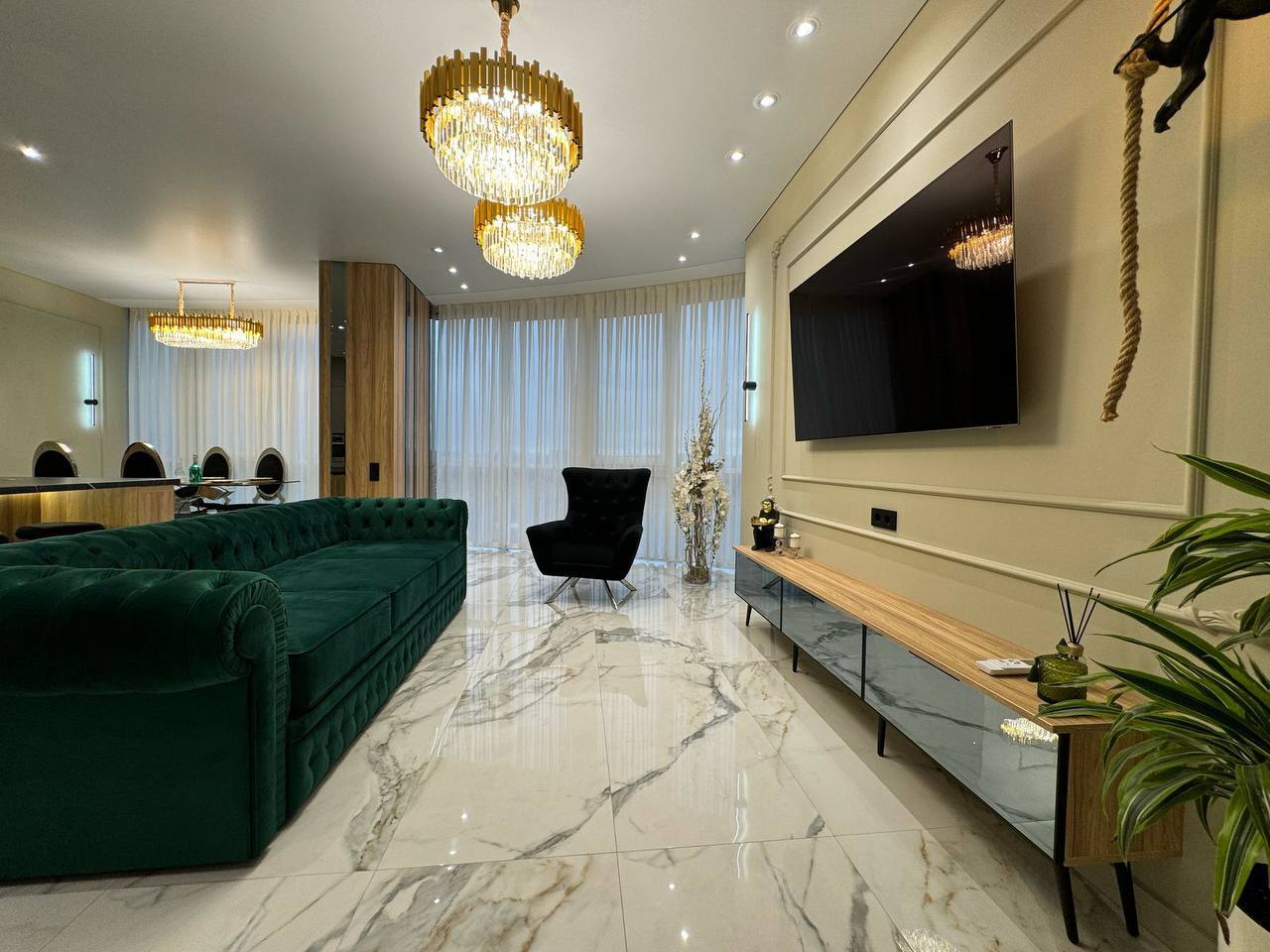 Квартира з неймовірними краєвидами, що відкриваються з панорамних вікон. Ремонт виконаний з дорогих та якісних матеріалів у світлих, спокійних тонах. Є 3 кондиціонери. Тепла підлога по всій квартирі. Квартира на електриці. У квартирі продумано все до дрібниць, починаючи з санвузла, закінчуючи просторими гардеробними. Простора кухня-вітальня дозволить приймати багато гостей. 2 окремі спальні. Залишається абсолютно все: меблі, техніка. Заходь і живи. Ця розкіш чекає на тебе.