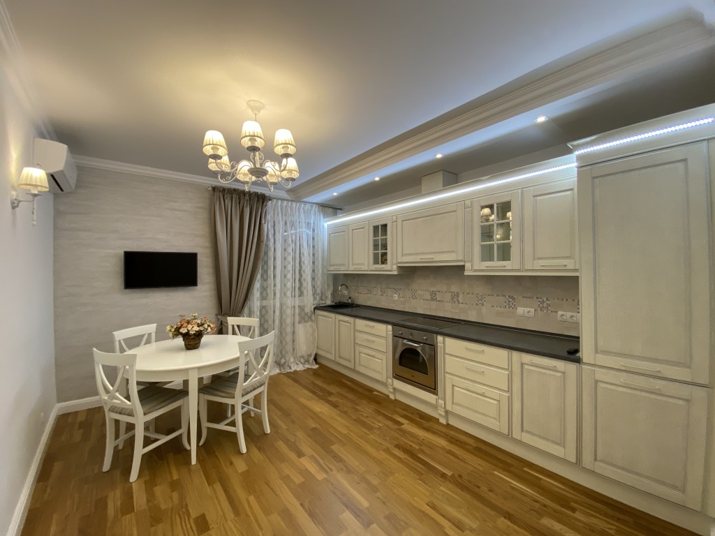 Максимальна комплектація побутовою технікою: два кондиціонери Cooper&Hunter;, варильна поверхня, витяжка, духова шафа, посудомийна машина, фільтр зворотного осмосу на воду, вбудований холодильник, додатково морозильна камера, пральна машина, бойлер, три телевізори (виробники AEG, FRANKE, BOSCH, WHIRLPOOl) та інше.