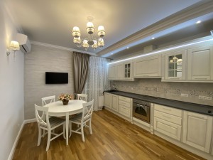 Квартира у відмінному стані! Якісний ремонт у світлих тонах з використанням сучасних матеріалів. Квартира укомплектована меблями, деякі завозилися індивідуально: вбудована кухня MERX з фурнітурою BLUM, двері і фурнітура преміум якості, є обідній стіл, стільці, багато шаф, двоспальне ліжко, приліжкові тумби, великий диван, полички та інше.