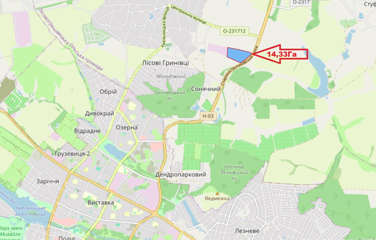 Продаж земельної ділянки 14.3288 га в передмісті Хмельницького, Лісові Гринівці.