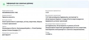 Призначення: 14.01 Для розміщення, будівництва, експлуатації та обслуговування будівель і споруд об'єктів енергогенеруючих підприємств, установ і організацій