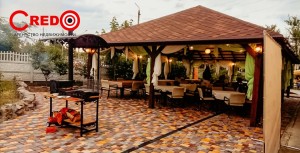 На территории с ландшафтным дизайном расположено 2-х этажное здание с летней зоной отдыха.