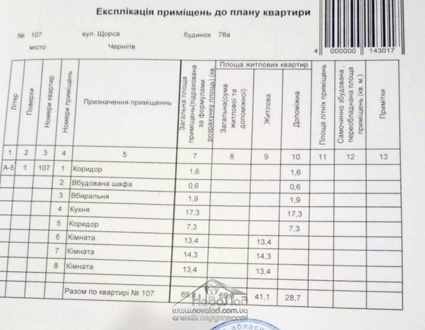Загальна площа: 71 кв.м