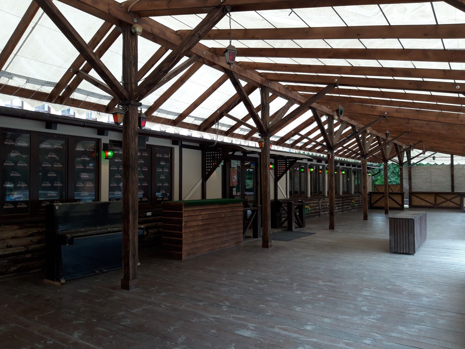 1. Кафе-паб «Villa Крокодила» с летней площадкой рассчитан до 250 посадочных мест с отдельным входом, гардеробной (на 500 номерков) и санузлами. Может работать автономно или совместно с Concert hall, банкетным залом и кухней. Общая площадь зоны кафе- паб 312,3 м.кв + 174 м.кв летней площадки.