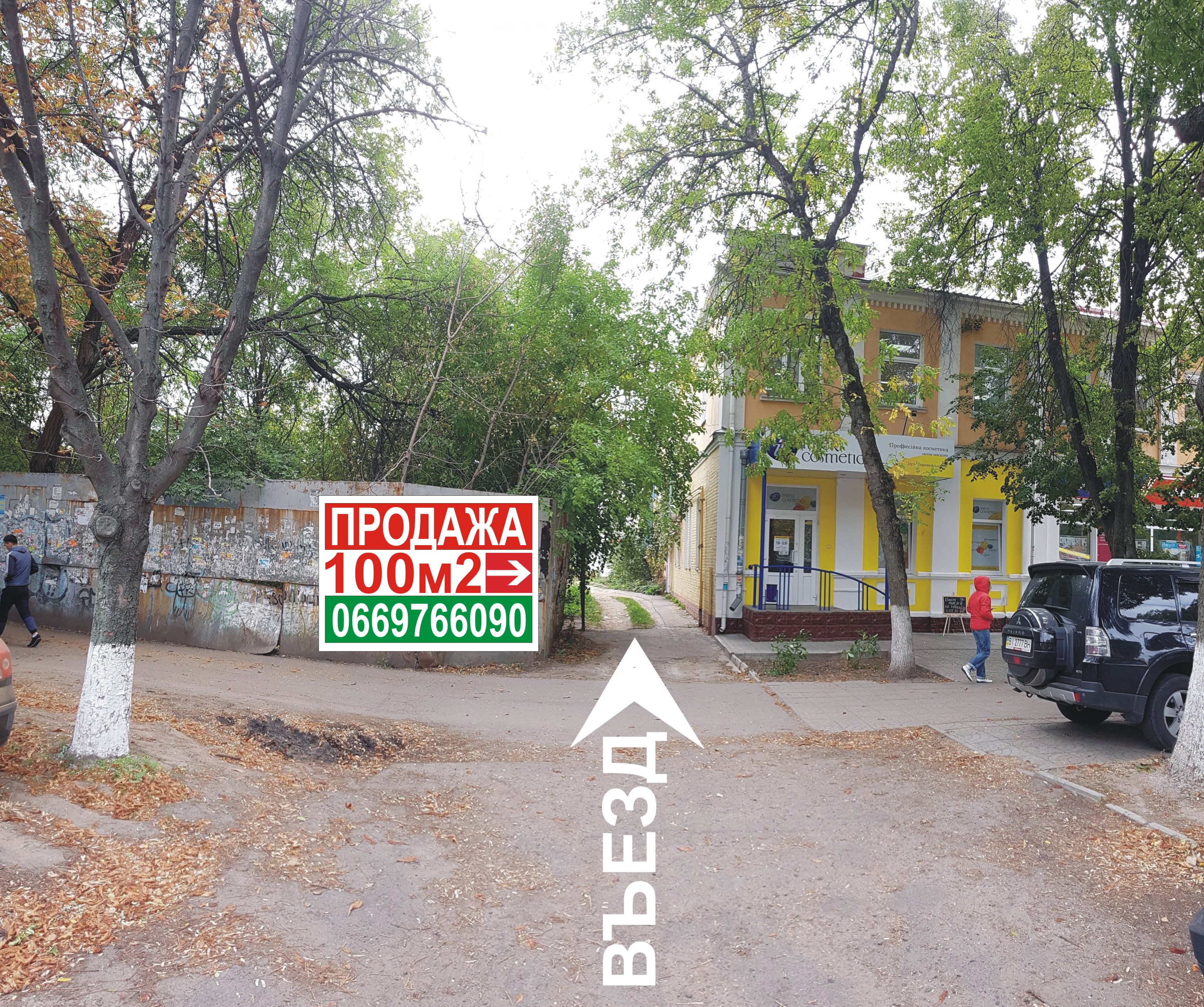 Высокие пешеходные и транспортные потоки, въезд с улицы Европейской.