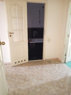 установлена новая сантехника, стены и потолки шпаклёваны.