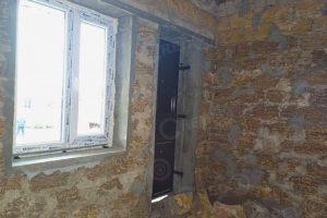 Будинок оштукатурений, встановлені вікна та вхідні двері, ливнівка, опалубок, дренаж по периметру будинку, цокольний поверх забетонований, без комунікацій.