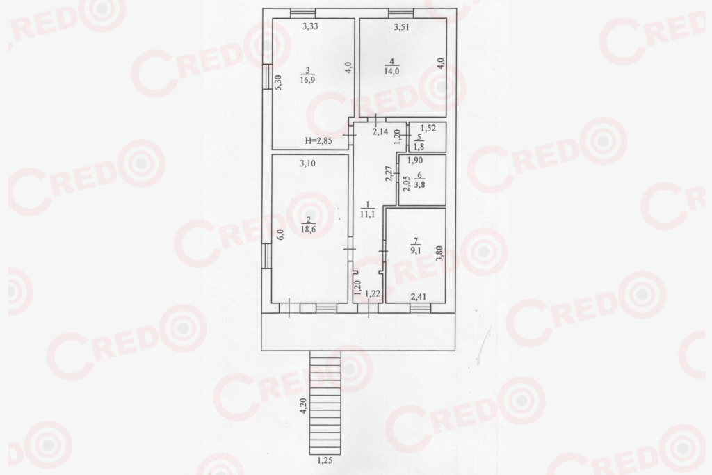 Земельна ділянка заг.пл. 5,4 сотки, рівна, прямокутної форми, приватизована, з кадастровим номером.
