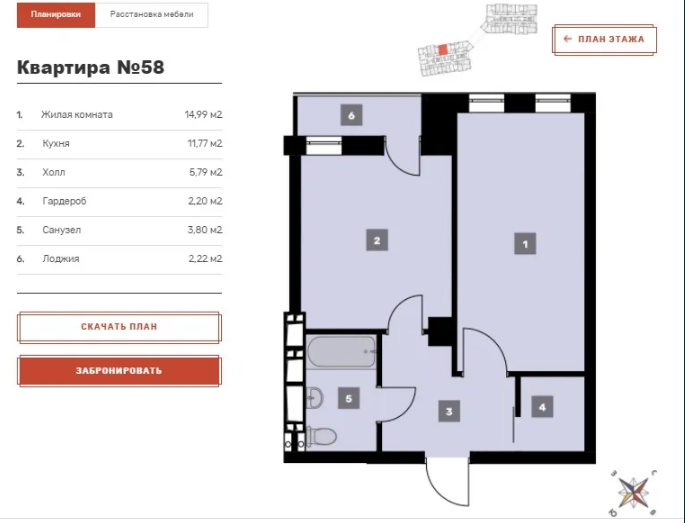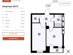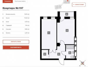 Так же есть 1к кв 42м2 с кухней 14м2.