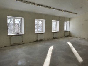 Загальна площа –1758,90 кв.м., з них 1й поверх - 633,1 (холл, аудиторії, кабінети, санвузли), 2й поверх – 706,5 (аудиторії, актова зала, спортзал, кабінети), цокольний поверх – 393,7 кв.м. (харчовий блок і технічні приміщення), підвал – 25,6 кв.м.