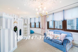 Шикарная и просторная гостиная имеет отдельную детскую зону с собственным маленьким дворцом для ваших наследников.