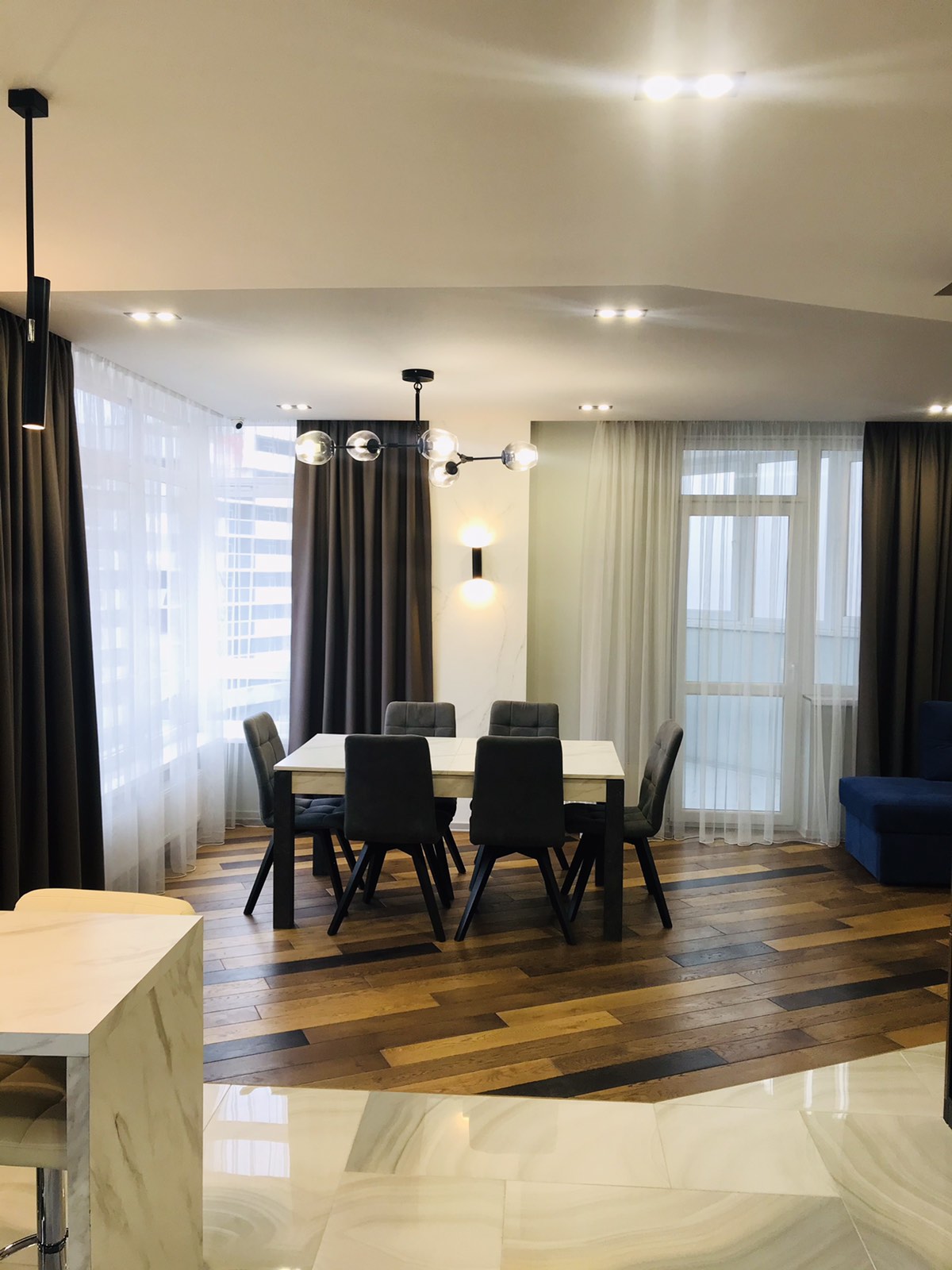 Квартира з дизайнерським ремонтом, все продумано до найменших дрібниць. Простора та світла квартира з кухнею-стідіо.