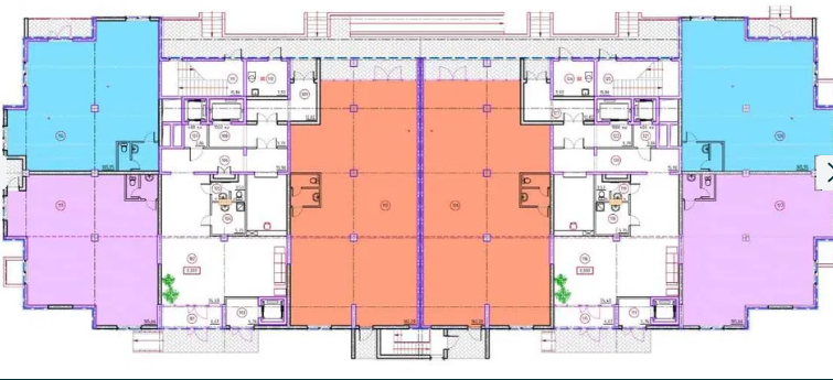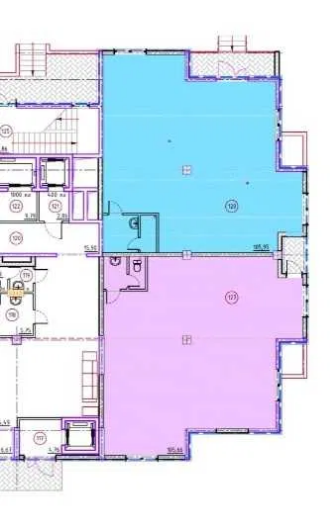 Есть возможность выкупить смежное зеркальное помещение, 109м2 (на плане) и получить 218м2.