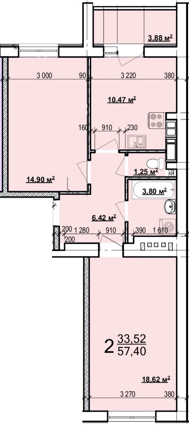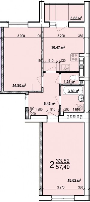 Загальна площа: 57 кв.м