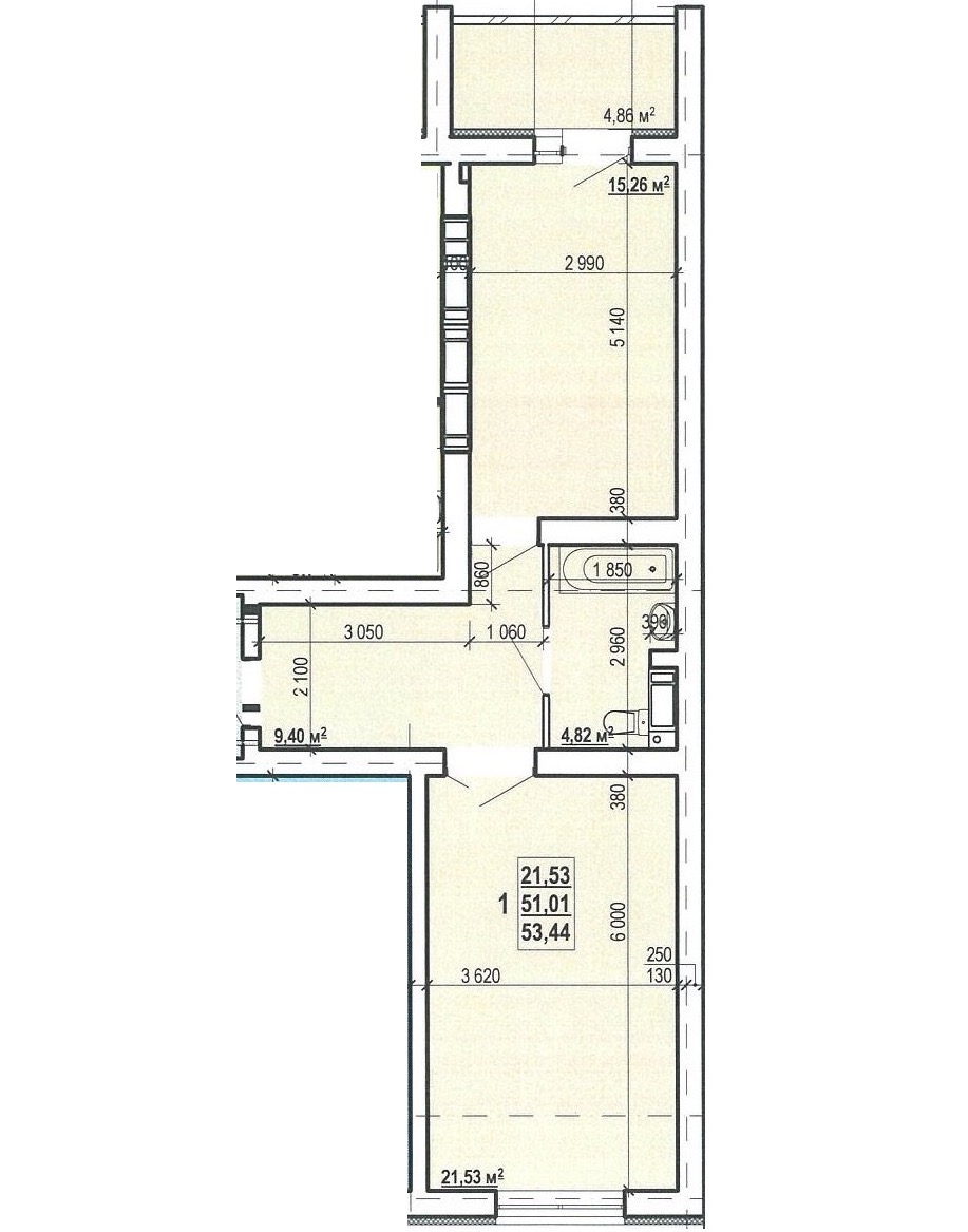Загальна площа: 53.44 кв.м