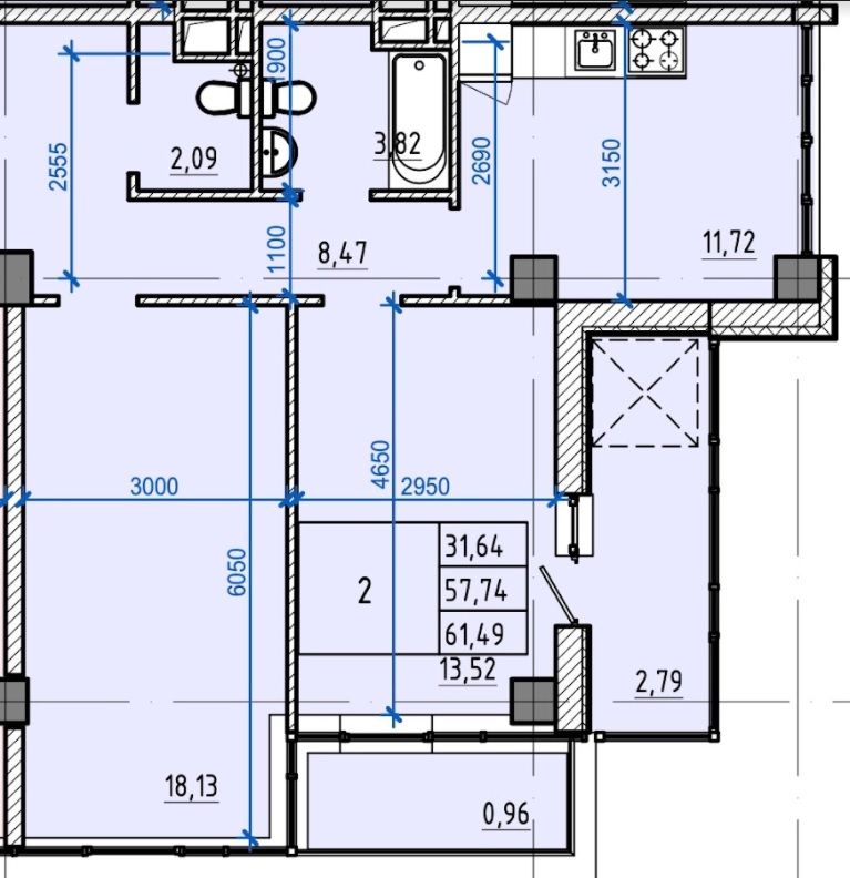 Загальна площа: 61.49 кв.м
