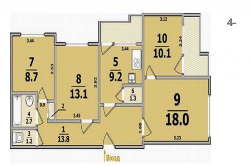 Общая площадь 84 кв.м: кухня 9 кв.м., 3 отдельные комнаты, 2 балкона, санузел раздельно.