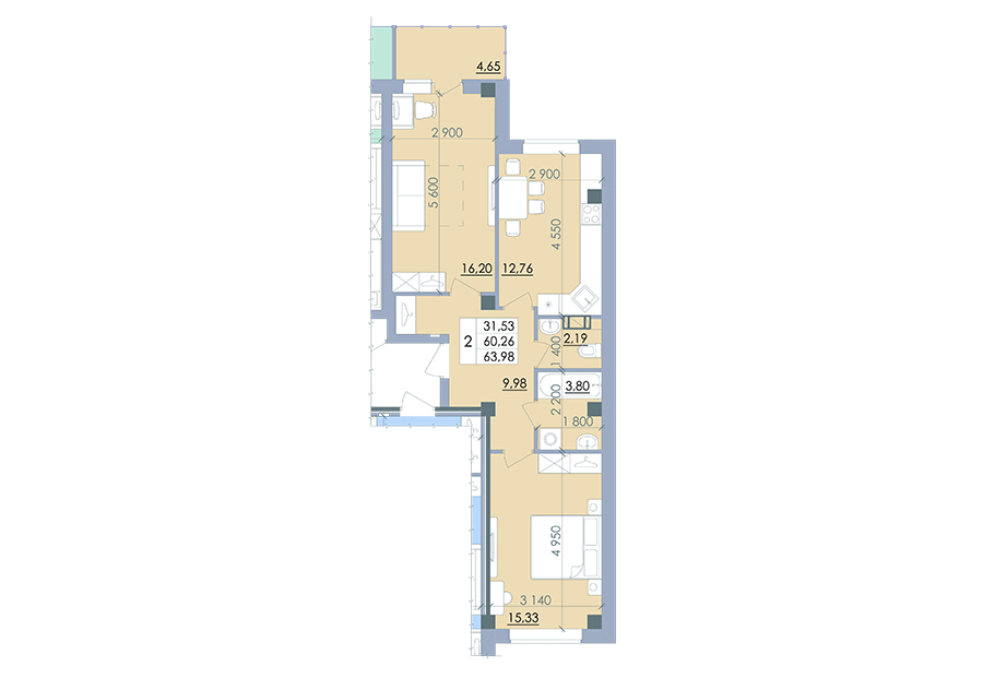 Загальна площа: 64 кв.м