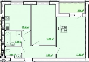 Загальна площа: 61 кв.м